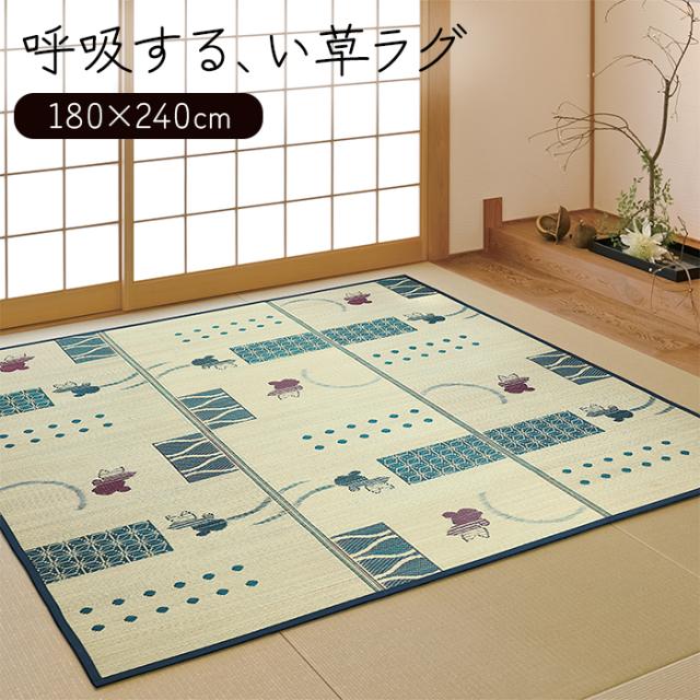 | い草 ラグ マット 夏 防カビ 抗菌 調湿 自然素材 裏面不織布 約180×240cm い草ラグ 金魚涼み (O) |