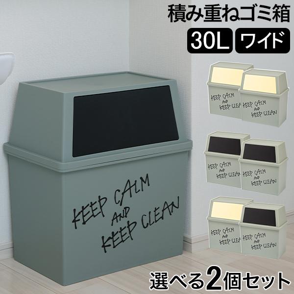 [あす着]ゴミ箱 2個セット 積み重ねゴミ箱ワイド30L キッチン リビング ふた付き ダストボックス 平和工業