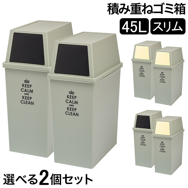 [あす着]ゴミ箱 2個セット 積み重ねゴミ箱スリム45L キッチン リビング ふた付き ダストボックス 平和工業