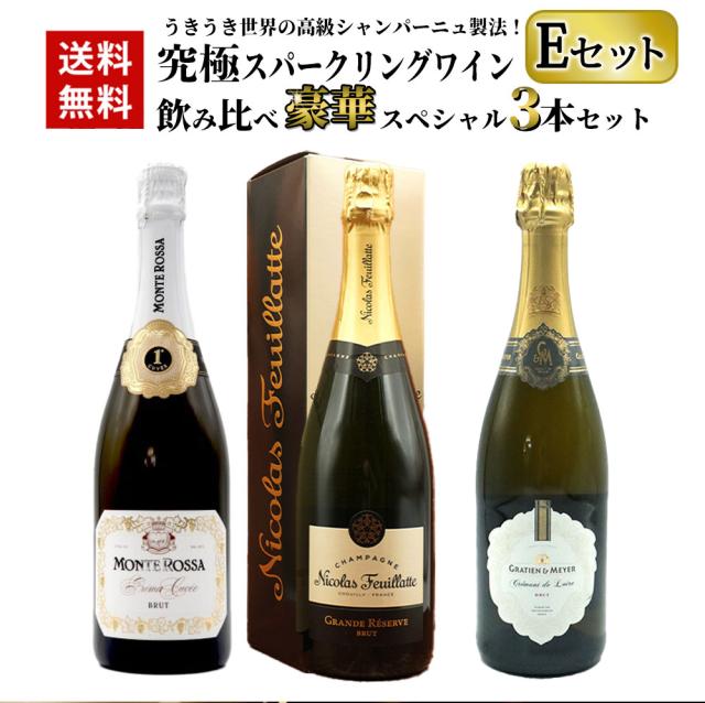 【送料無料】うきうき世界の高級シャンパーニュ製法!究極スパークリングワイン 飲み比べ豪華スペシャル3本セット [Eセット]