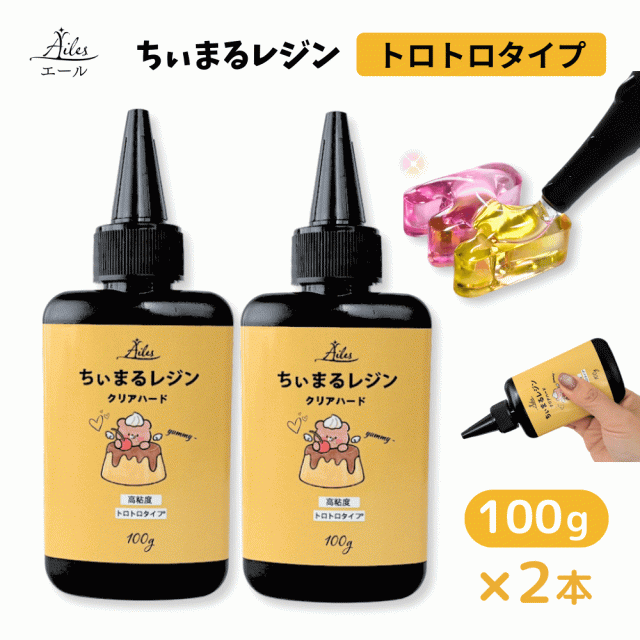 レジン液 uvレジン UVレジン液トロトロ おすすめ 仕上げ 盛る ぷっくり 封入 黄変しにくい 高粘度 ぷっくり仕上げ 高透明 硬化早いクリアハード クリアカラー 透明 大容量 100g 2本 お買い得 UV/LED 対応 レジン ちぃまるレジン Ailes エール
