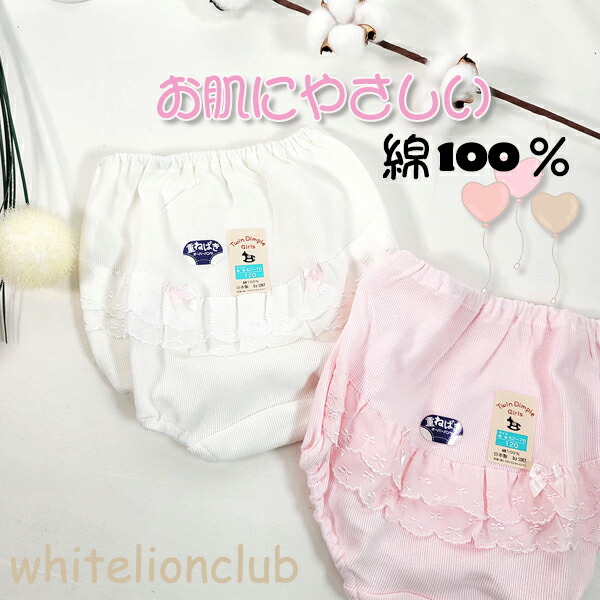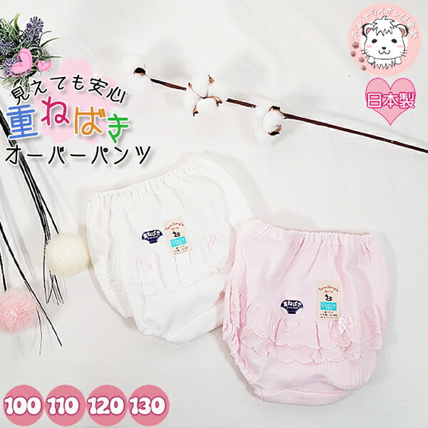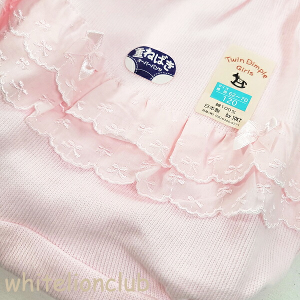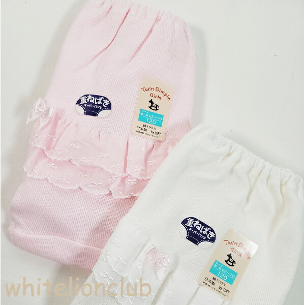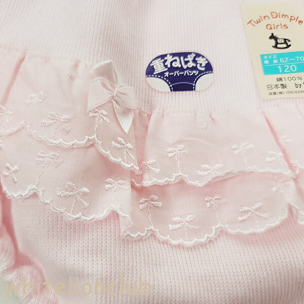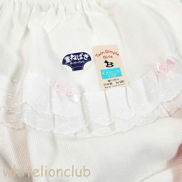 【アウトレット】キッズ 重ね履き リボン付レース オーバーパンツ 日本製 100cm | スカートインパンツ 女の子 白 ピンク ツインディンプル Twindimple