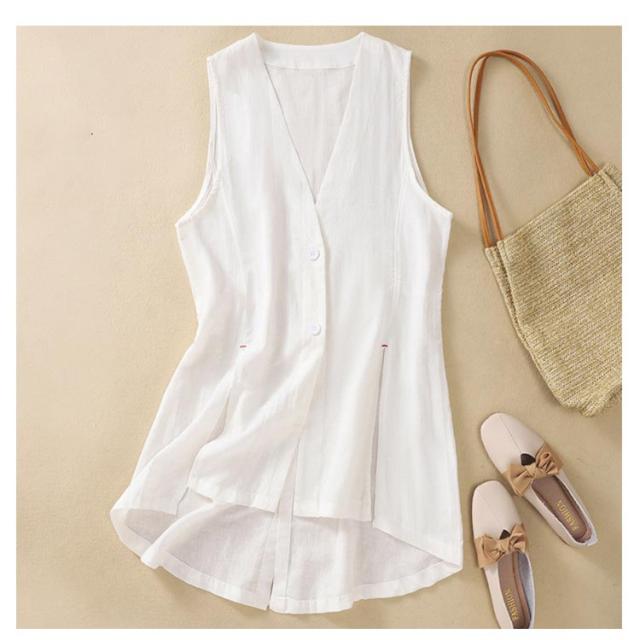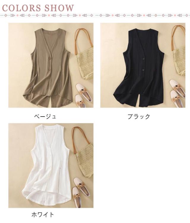 ベスト レディース サマーベスト 綿麻 ロング ゆったり ベスト レディース 春夏 リネンベスト レディースベスト 夏ベスト ジレ 無地 薄手 前開き トップス 羽織り 夏 春夏 夏ベスト 薄手 前開き トップス 体型カバー 送料無料