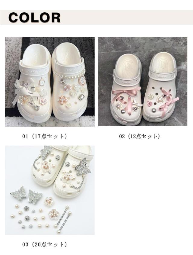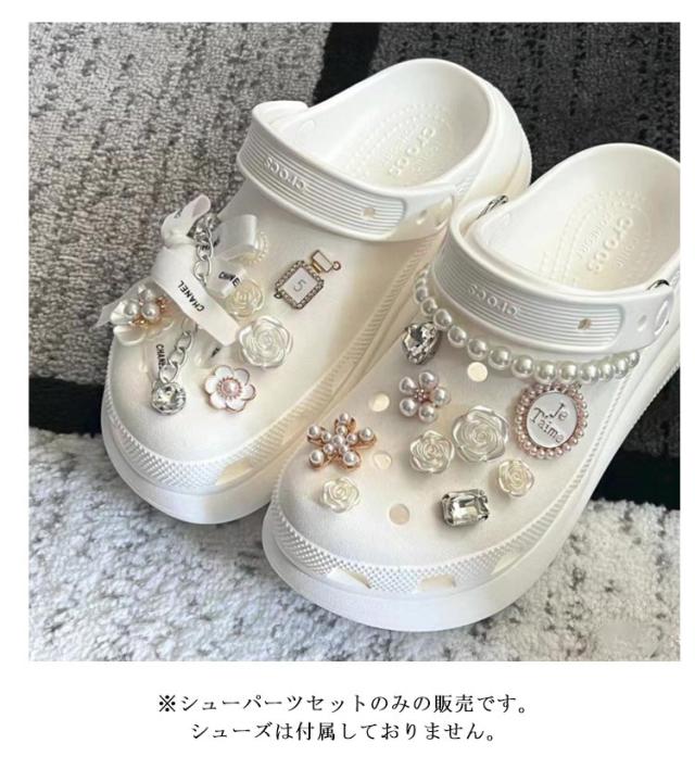 シューパーツ 12点/17点/20点セット サンダル用 靴飾り シューアクセサリー シューズアクセサリー レディース 女性 パール調 蝶 蝶々 花 フラワー チェーン おしゃれ かわいい シューチャーム デコレーション ジビッツ キッズ 女の子 DIY シューズチャーム サンダルボタン