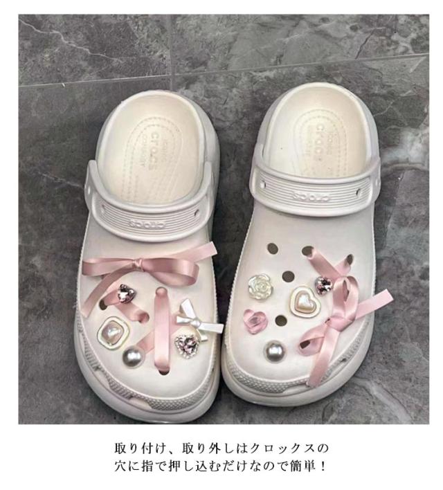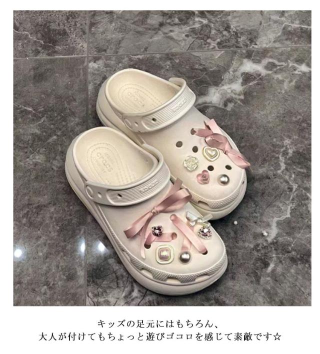 | 可愛さに差が付く!靴飾り! 取り付け、取り外しはクロックスの穴に指で押し込むだけなので簡単! キッズの足元にはもちろん、大人が付けてもちょっと遊びゴコロを感じて素敵です☆ ※シューパーツセットのみの販売です。シューズは付属しておりません。 | |