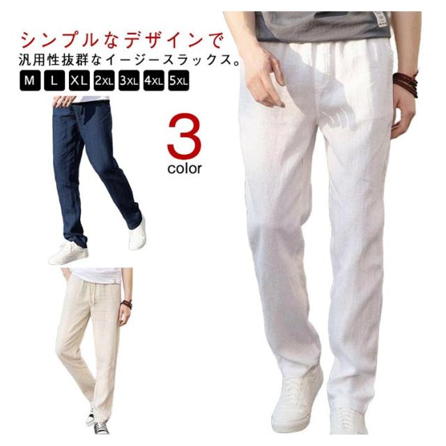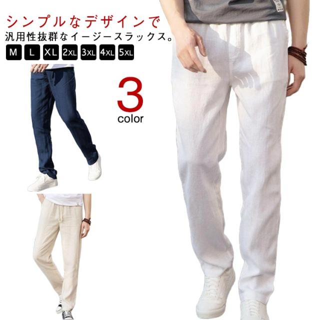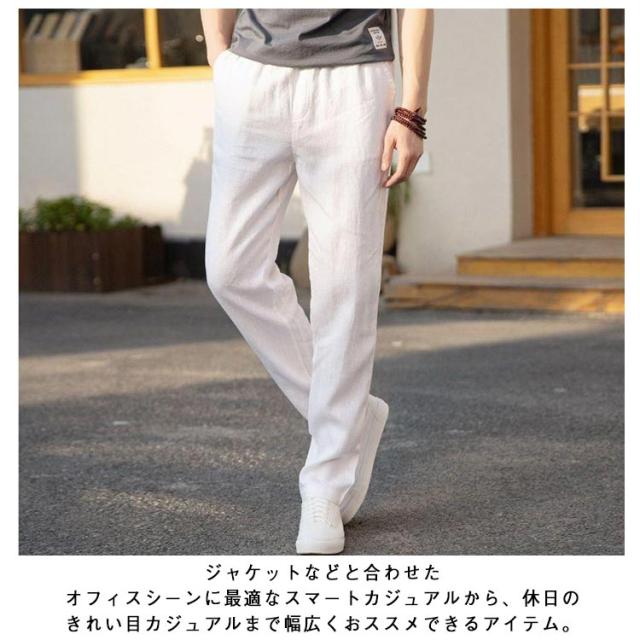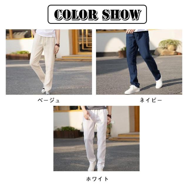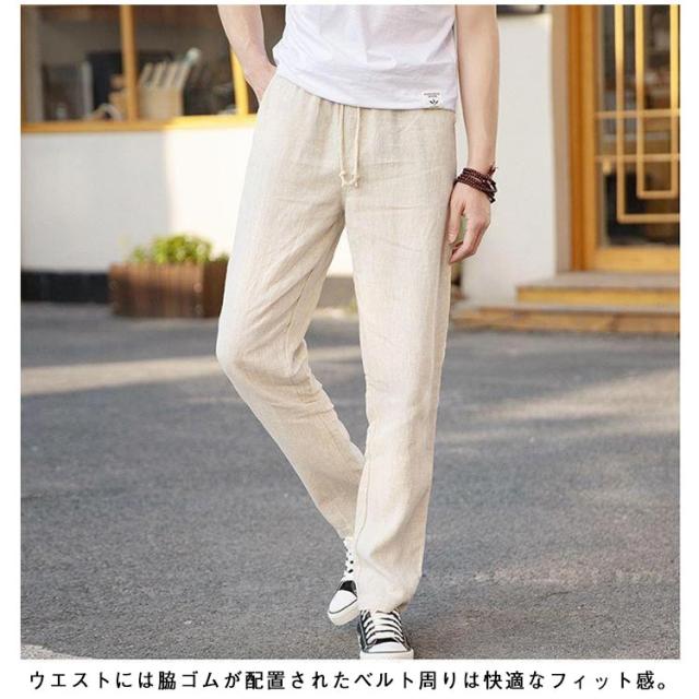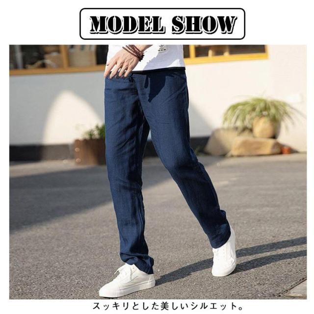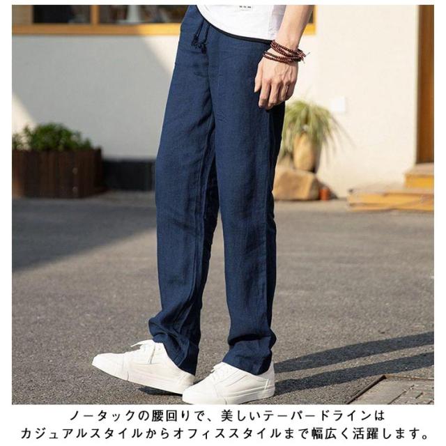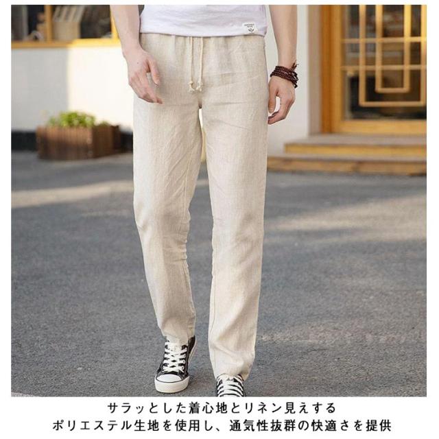 綿麻調 テーパードパンツ メンズ リネンパンツ スラックス イージー 綿麻パンツ 涼しい 清涼感 通気性 快適 薄手 すっきり スリムパンツ リネン調 イージーパンツ カジュアルパンツ 春 夏 秋 ズボン ゴムウエスト 無地 大きいサイズ