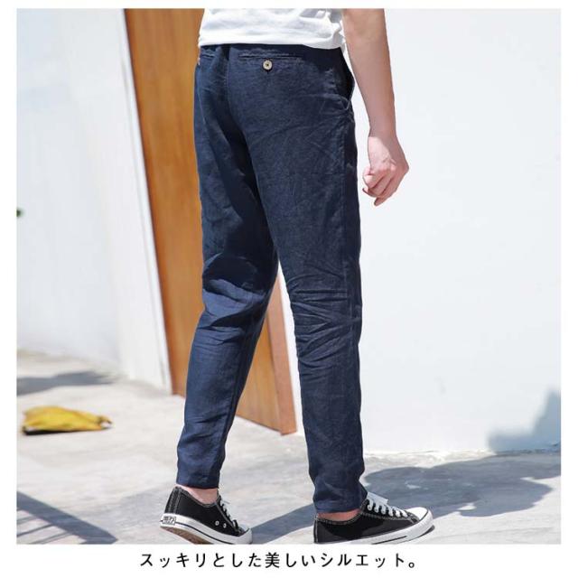| 100%リネンを使用した涼しいテーパードパンツ。【イージータイプ&スラックスタイプ】2タイプあり スッキリとした美しいシルエット。 ノータックの腰回りで、美しいテーパードラインはカジュアルスタイルからオフィススタイルまで幅広く活躍します。 通気性、速乾性に優れたリネンパンツは、ジメジメとした梅雨や汗ばむ夏場に最適な素材。 ウエストには脇ゴムが配置されたベルト周りは快適なフィット感。 ジャケットなどと合わせたオフィスシーンに最適なスマートカジュアルから、休日のきれい目カジュアルまで幅広くおススメできるアイテム。 | |