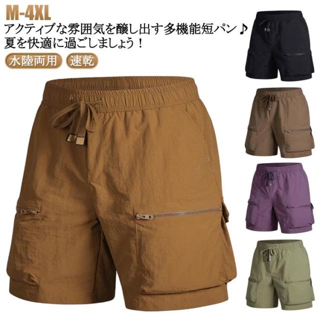 カーゴパンツ メンズ 夏 夏用 ハーフ 涼しい ひんやり ハーフパンツ レディース カーゴパンツ 速乾 ハーフパンツ カーゴ ミリタリー カーゴショーツ メンズ 大きいサイズ ひざ下 アメカジ ストリート 無地 ナイロン素材を使用した水陸両用カーゴショーツ 送料無料