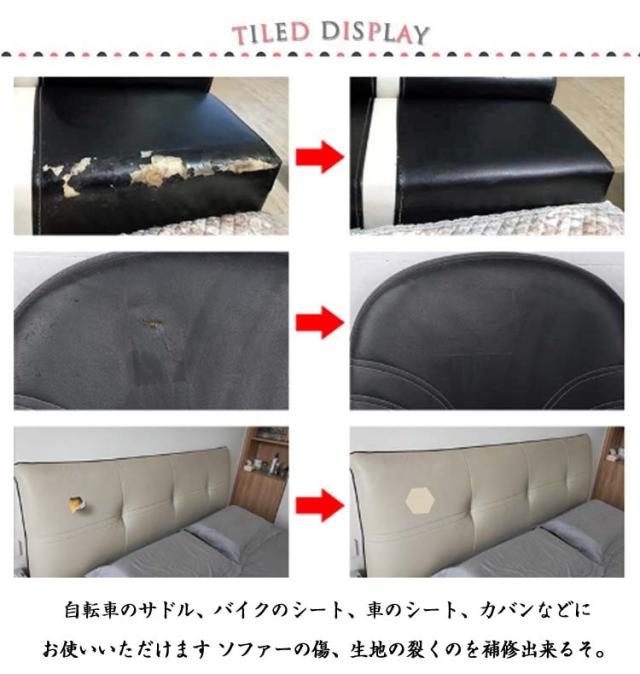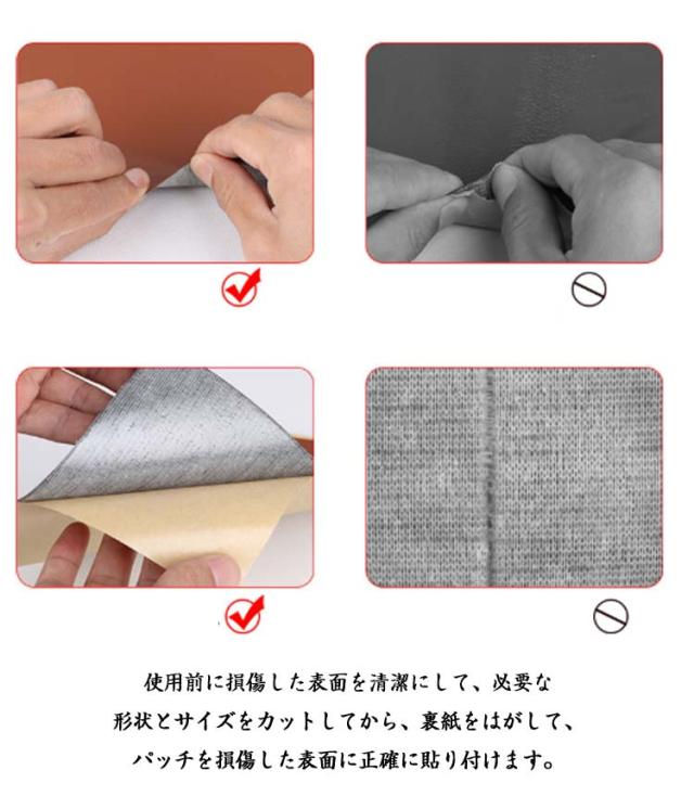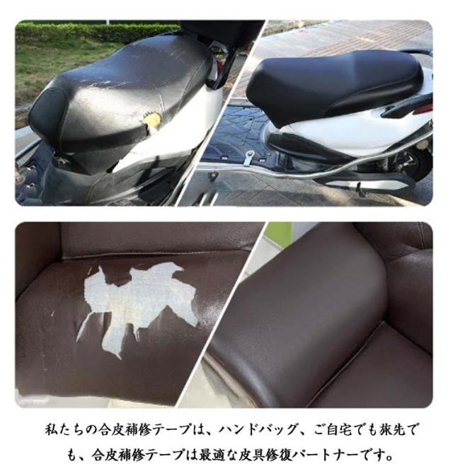 | 自転車のサドル、バイクのシート、車のシート、カバンなどにお使いいただけます ソファーの傷、生地の裂くのを補修出来るそ。その他キズや破れ以外に手芸品、民芸品、工芸品などの工作やDIYなどにもご使用いただけます 使用前に損傷した表面を清潔にして、必要な形状とサイズをカットしてから、裏紙をはがして、パッチを損傷した表面に正確に貼り付けます。 私たちの合皮補修テープは、ハンドバッグ、ご自宅でも旅先でも、合皮補修テープは最適な皮具修復パートナーです。 初心者からプロフェッショナルまでご使用いただける貼るPU革の定番な皮革です。 | |