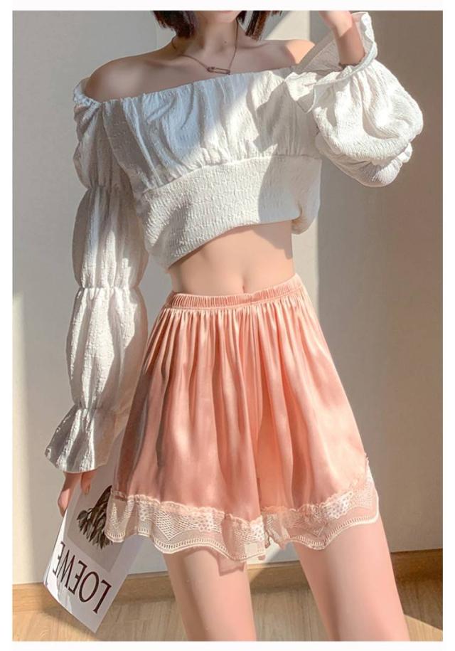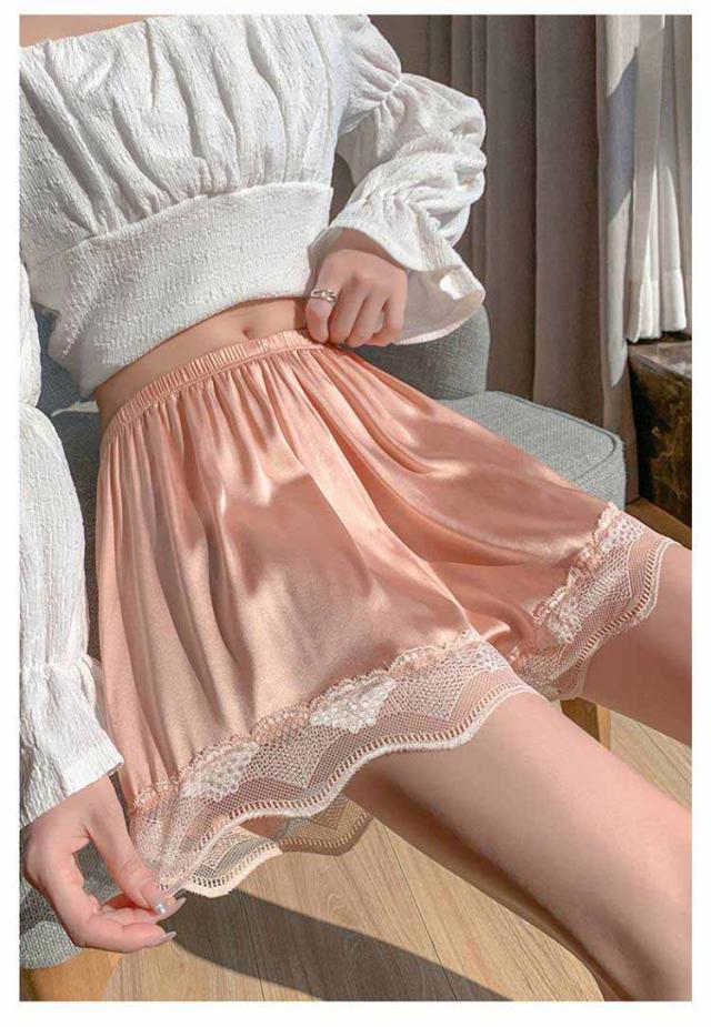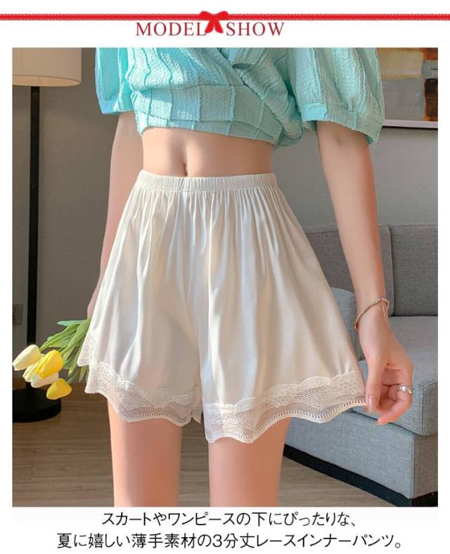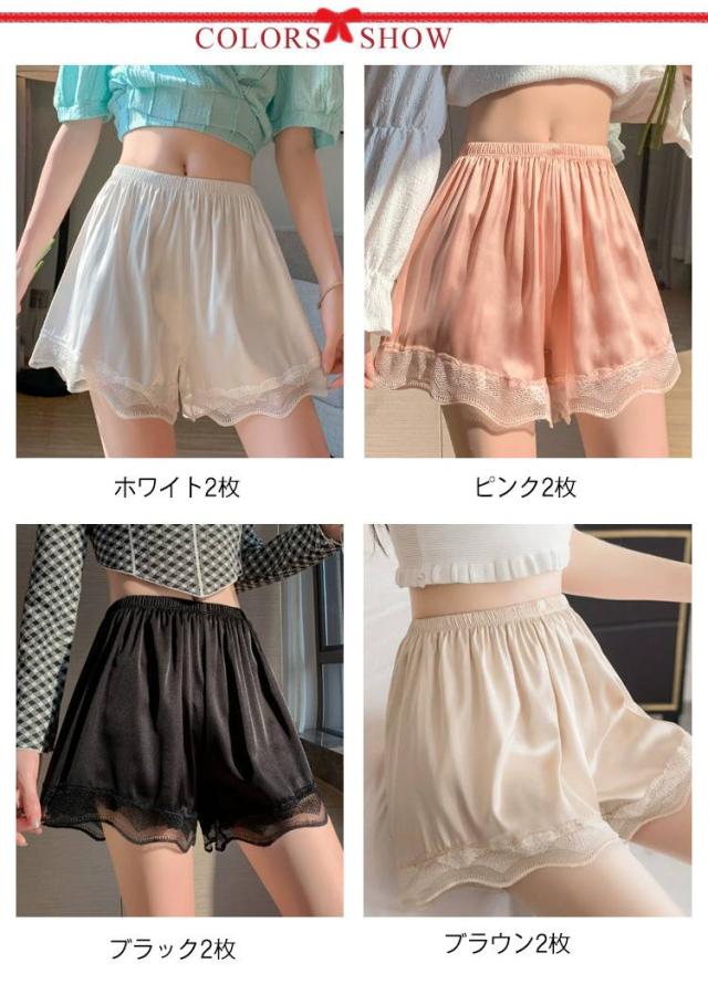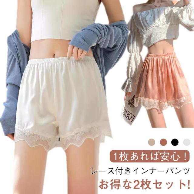 ペチコート ブライダルインナー インナーパンツ 2枚セット レディース レース裾 ペチパンツ レース付き パンツ ルームウェア ショートパンツ 三分丈 夏用 薄手 快適 下着 送料無料