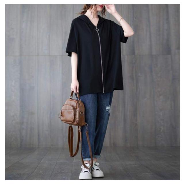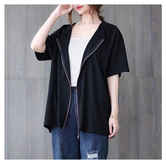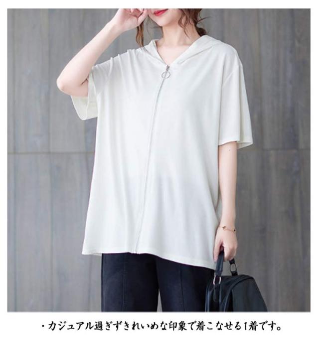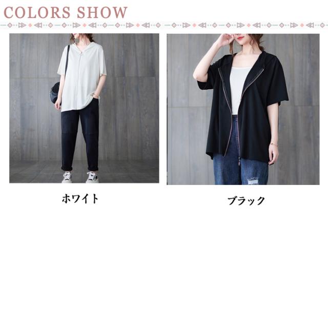 大きいサイズ レディース 半袖 パーカー ジップアップ フード付き 薄手 ジップアップパーカー フルジップ ジャケット ブルゾン アウター ゆったり 夏 夏用パーカー