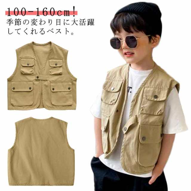 子供服 キッズ ベスト 前開き ベビーベスト ベスト ジレ 赤ちゃん 柔らかい 羽織 韓国風 重ね着 ボタン 男の子 男女兼用 アウター インナーベスト インナー オシャレ ダンス衣装 ヒップホップ 男児 春 夏 冷房対策 保育園 幼稚園 春 秋 送料無料 ベージュ