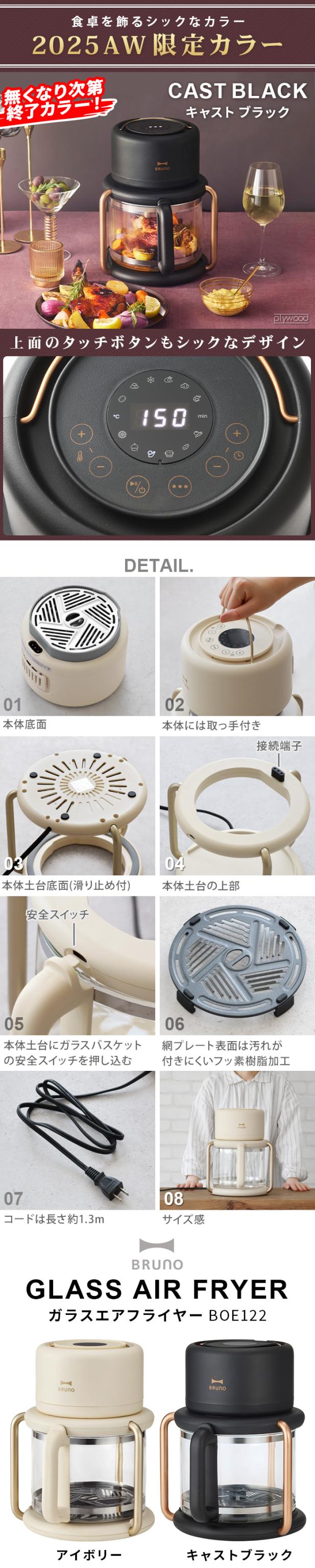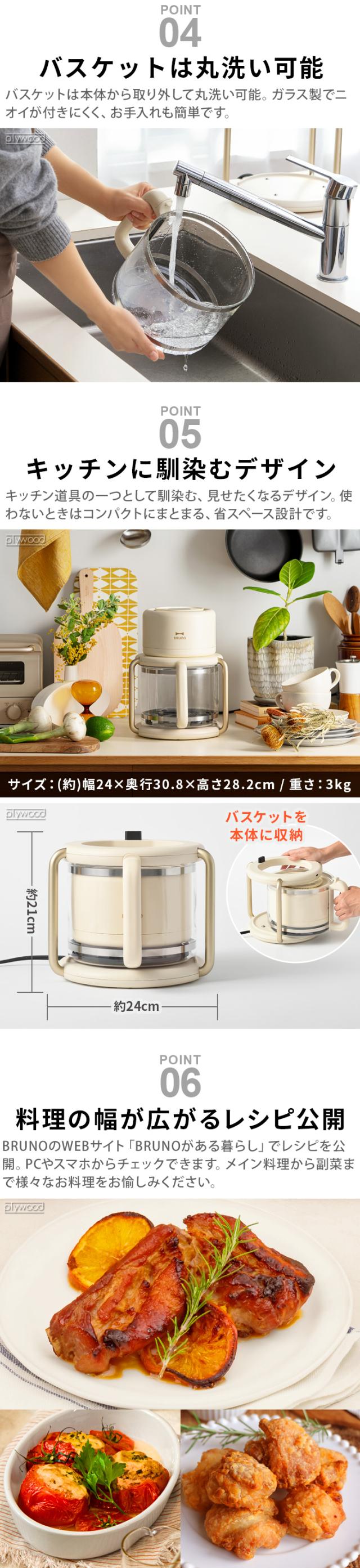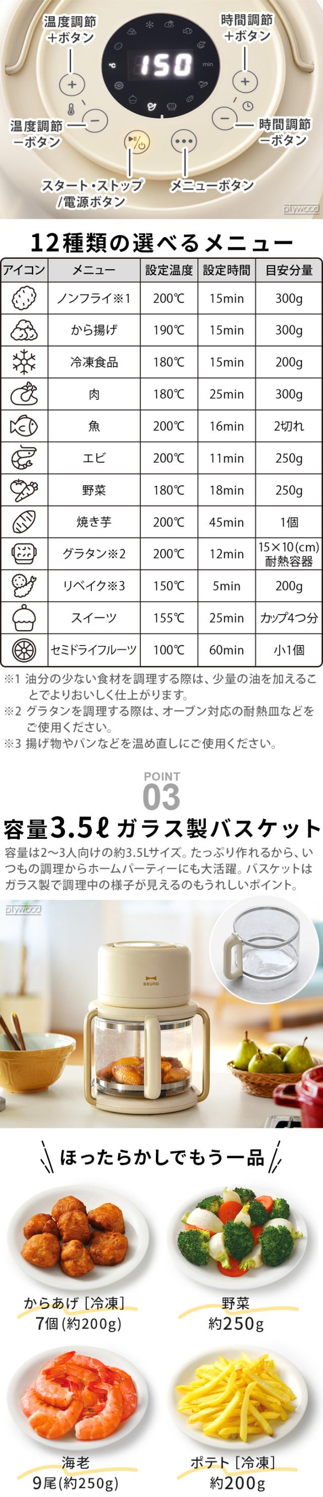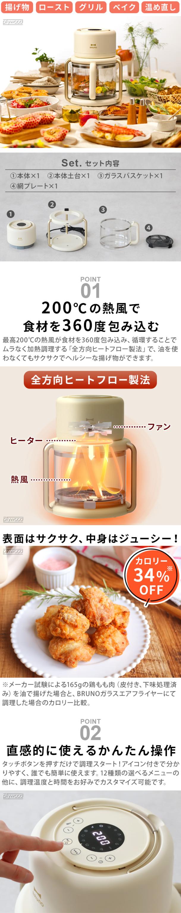 【選べる特典付】 ノンフライヤー 電気フライヤー オーブン 家庭用 ブルーノ BRUNO ガラスエアフライヤー BOE122 耐熱ガラス エアーオーブン ノンオイル 油を使わない ヘルシー 大容量3.5L 揚げ物 からあげ グリル ロースト 温め直し 送料無料 P10倍