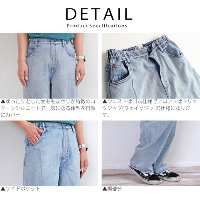ゆったりとした太ももまわりが特徴のコクーンシルエットで、気になる体型を自然にカバー。