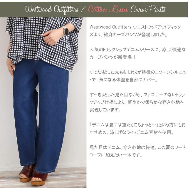 ウエストウッドアウトフィッターズ 綿麻デニム カーブパンツ 涼しい コクーンシルエット デニムパンツ Westwood Outfitters ( 8115046 ) ウエストゴム リラックスパンツ レディース ボトムス 涼感ボトムス 軽いデニム 夏デニム 暑さ対策 楽ちん おしゃれ アーベン