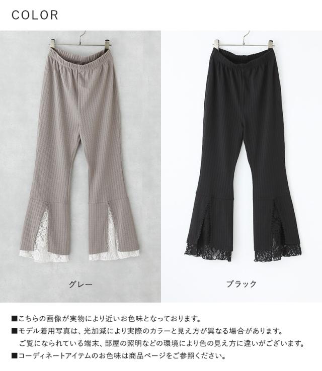 『レーススリットフレアレギンスパンツ』※メール便可※【10】[レギンス パンツ レディース ボトムス ロング丈 レース フレア スリット リブパンツ 美脚見え レイヤード 重ね着 春 夏 秋 冬]