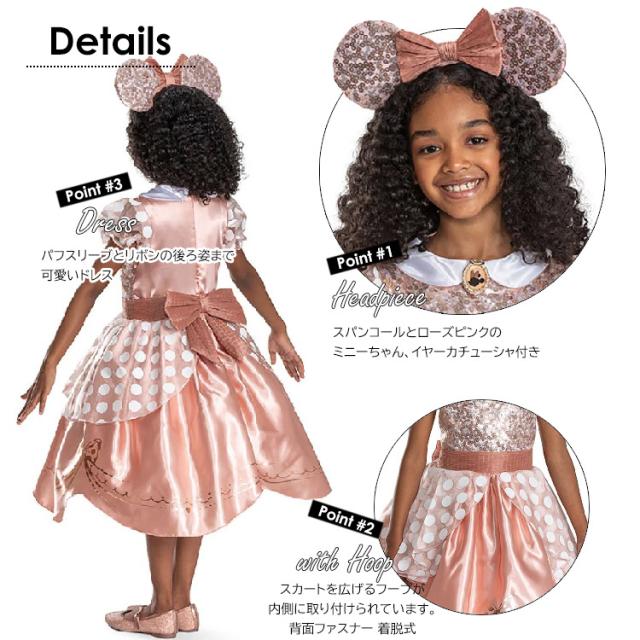 ディズニー公式ライセンス 背中にファスナーのワンピースタイプ。 スカート内側にスカートを広げるワイヤー付き (お届け時型が崩れていますが、何度も癖付けを変えて頂く事で改善します。) スパンコールの可愛いイヤーカチューシャ付き |