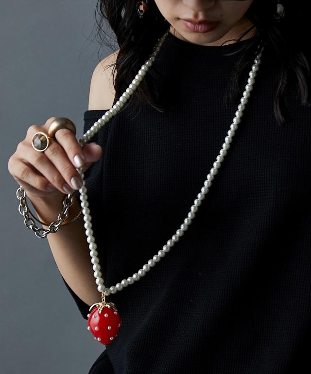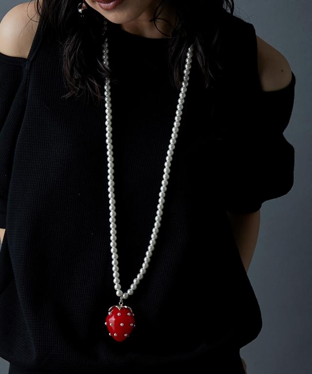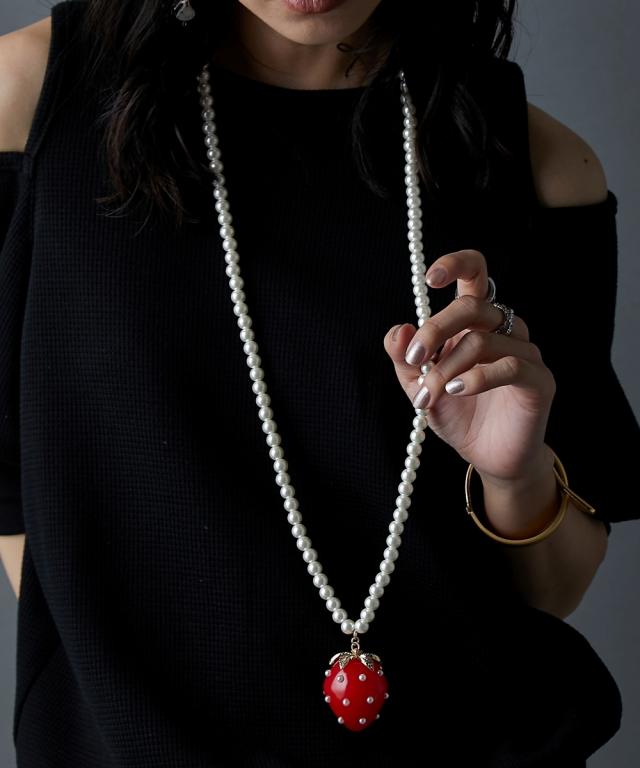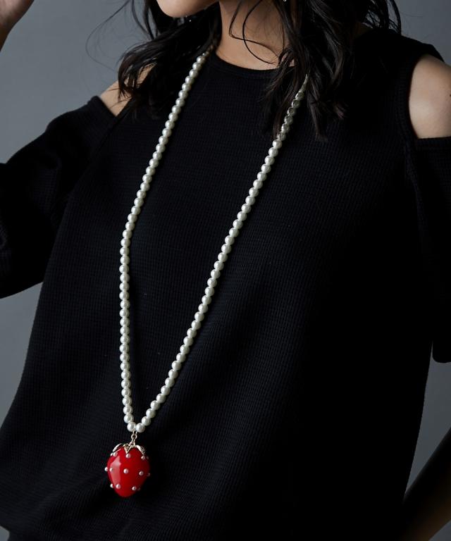 イチゴモチーフパール調ビーズロングネックレス(長め設計) GEVS.