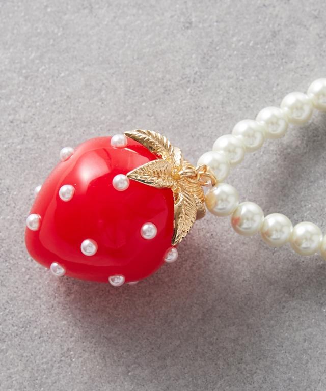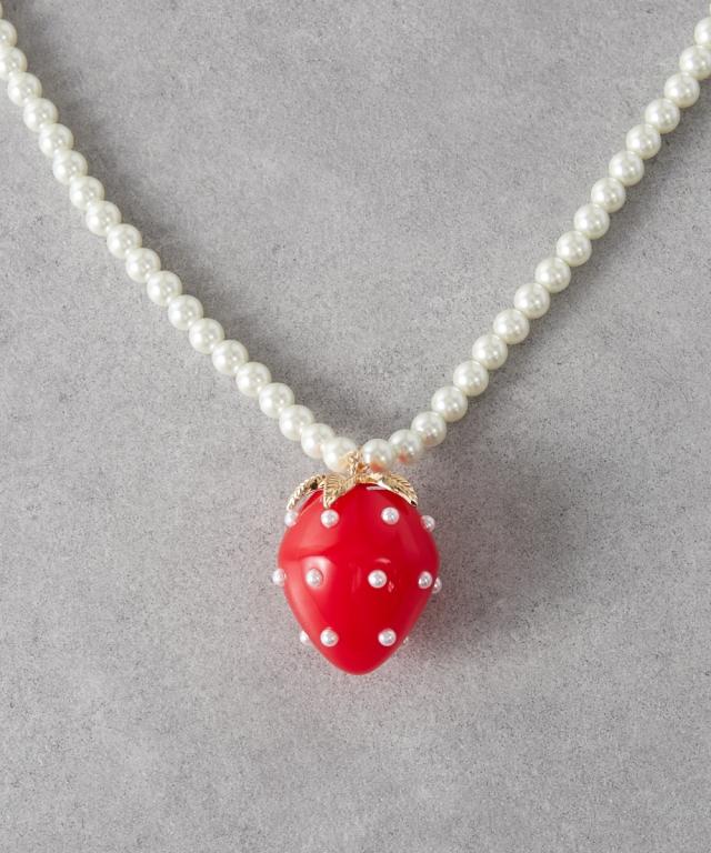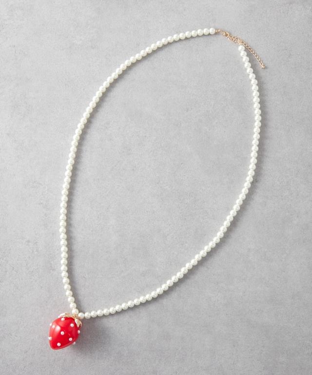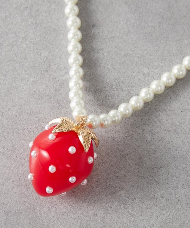 レディース イチゴモチーフ パール調ビーズ ロング ネックレス 長め設計 GEVS. 春 夏 秋 冬 かわいい おしゃれ アクセサリー ニッセン nissen