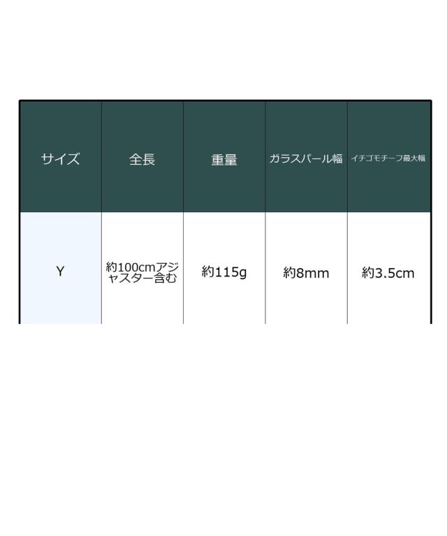 材質=エポキシ樹脂・亜鉛合金・樹脂パール調ビーズ・スチール・ガラスパール サイズ=全長約100cm(アジャスター約8cm付) パール調ビーズ最大幅=約8mm イチゴモチーフ最大幅=約3.5cm 重量=約115g ※手作りのため色の出方・サイズが多少異なる場合があります。 原産国:中国製
