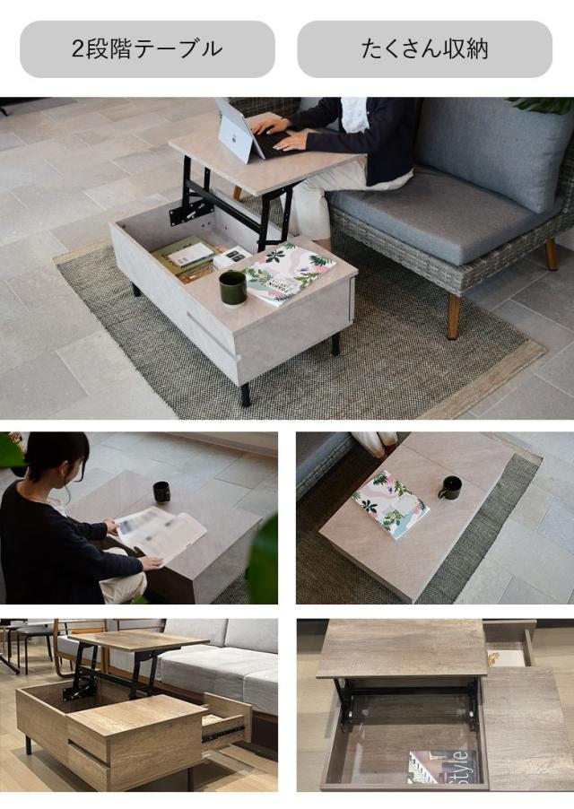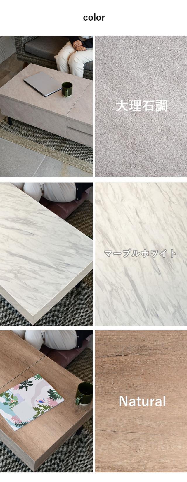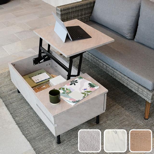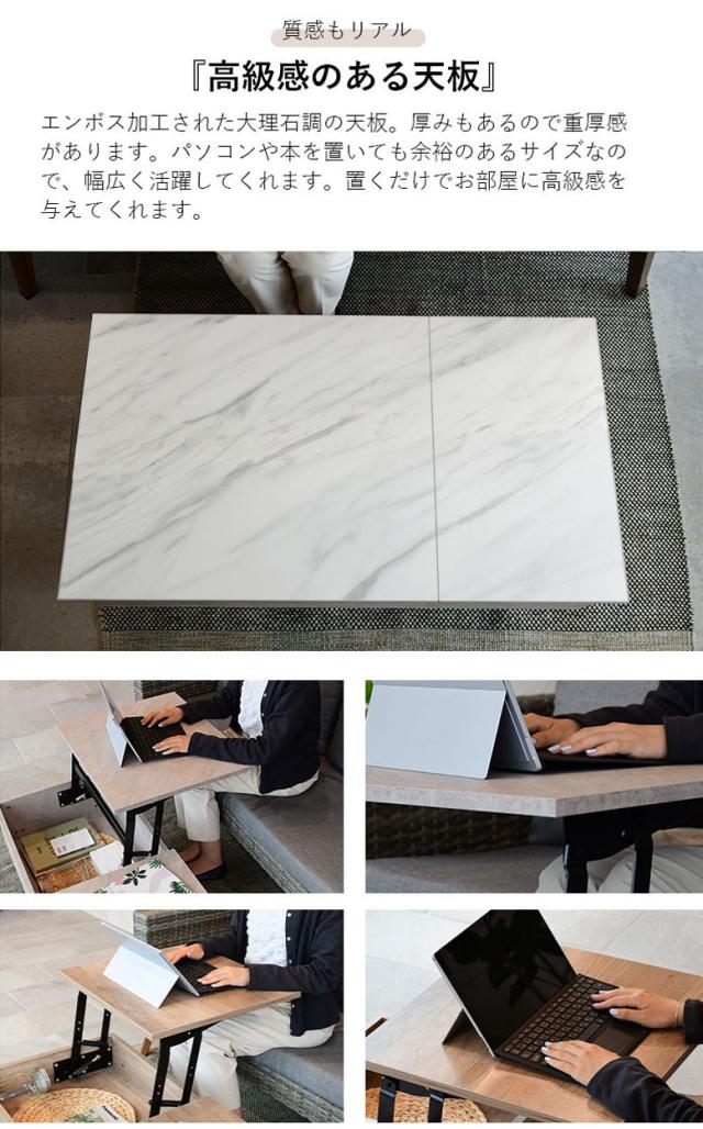 インテリア 2段階 調節 昇降 昇降テーブル テーブル ローテーブル リビング PC パソコンテーブル ヴィンテージ おしゃれ かわいい センターテーブル リフトアップローテーブル 90×50cm 大理石調 ナチュラル マーブルホワイト【大型宅配便】