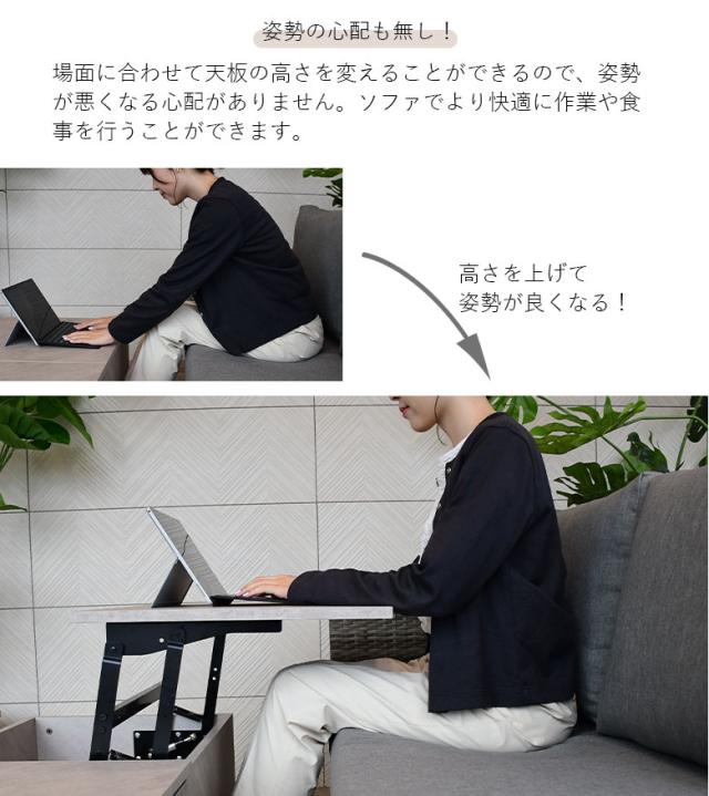 ・楽な姿勢に高さを合わせることで、ソファでより快適に作業や食事を行うことができます。