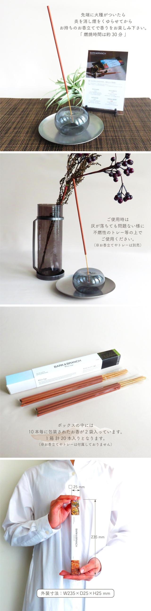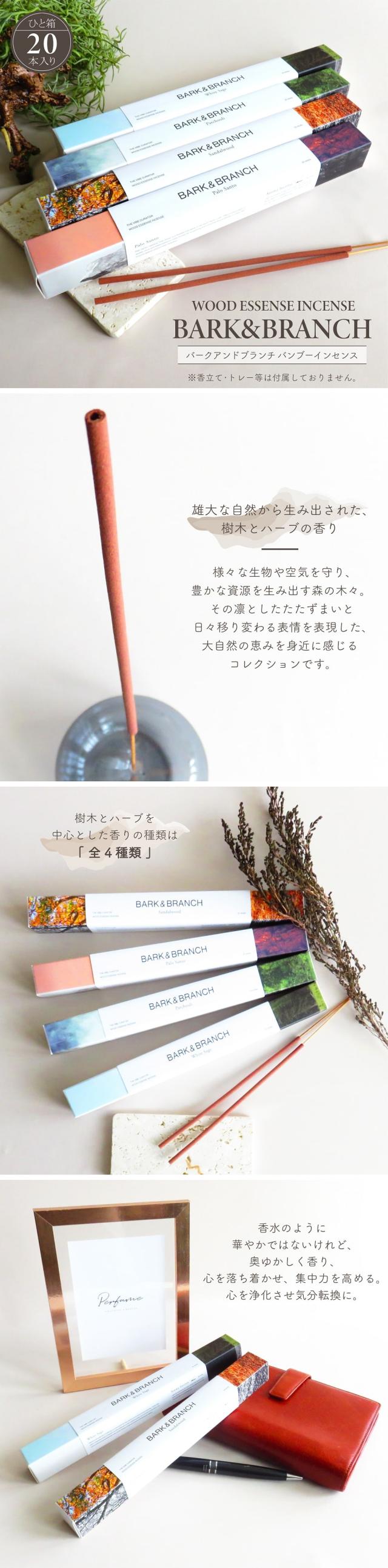 アロマ お香 Bark&Branch バーク&ブランチ バンブーインセンス 20本入り 燃焼約30分 樹木とハーブの香り サンダルウッド パロサント パチュリ ホワイトセージ 全4種 スティック フレグランス ヒーリング リラックス 線香 芳香 おしゃれ ギフト インテリア