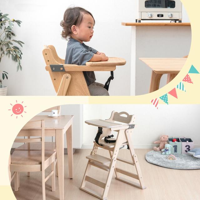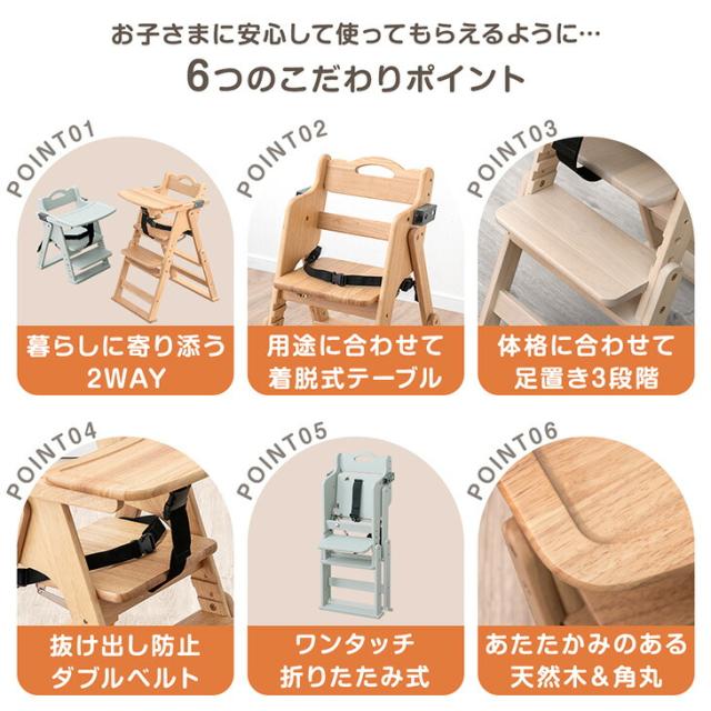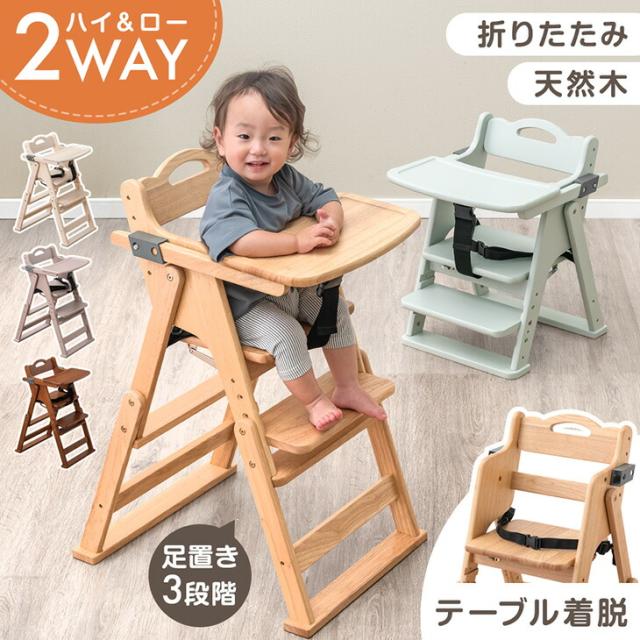 2WAYハイ&ロー ベビーチェア 天然木 テーブル 折りたたみ 持ち運び 立ち上がり防止 ベルト 高さ調整 足置き ハイチェア ローチェア ベビーチェアー キッズチェア チェア いす 椅子 木 木製 子供 赤ちゃん ベビー キッズ