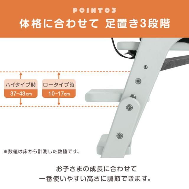 | 足置きの高さを5段階調節できる ▼同シリーズのハイチェアもございます▼ | |