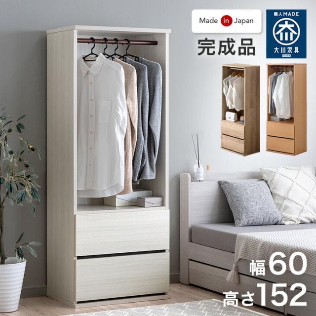 【23日P5%還元】 引き出し付き ワードローブ 幅60 高さ152 国産 完成品 大川家具 服吊り ハンガーラック クローゼット 衣類ラック リビング収納 衣類収納 収納 チェスト 収納家具 組立不要 木製 おしゃれ 北欧 スリム 【超大型】【後払/時間指定NG】