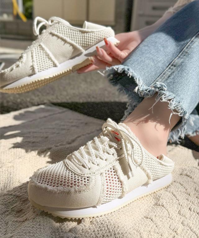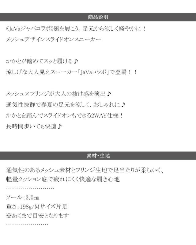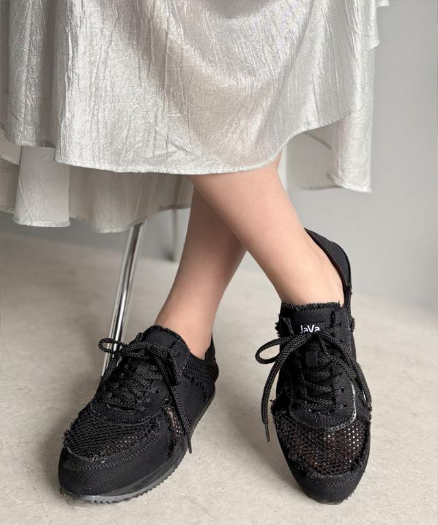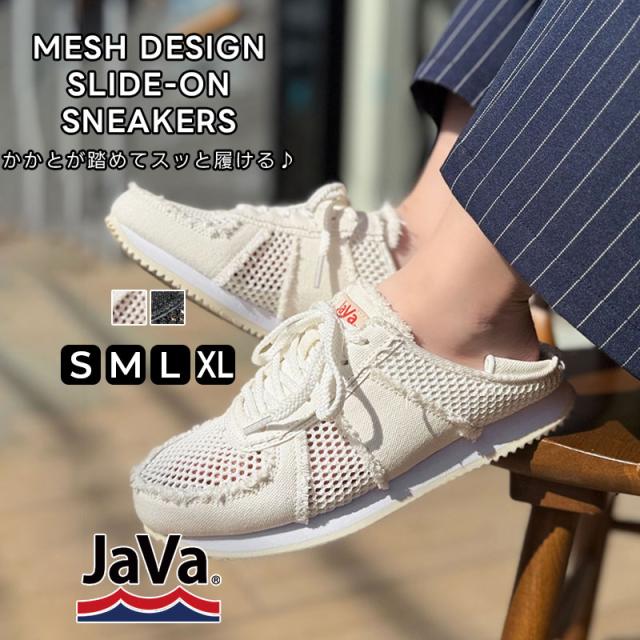 クラシカルエルフ秋新作 javaジャバコラボ シューズ スニーカー レディース 2WAY 軽やか メッシュ デザイン スライドオンスニーカー ソフトクッションインソール 大きいサイズ 2025ss jv1129022