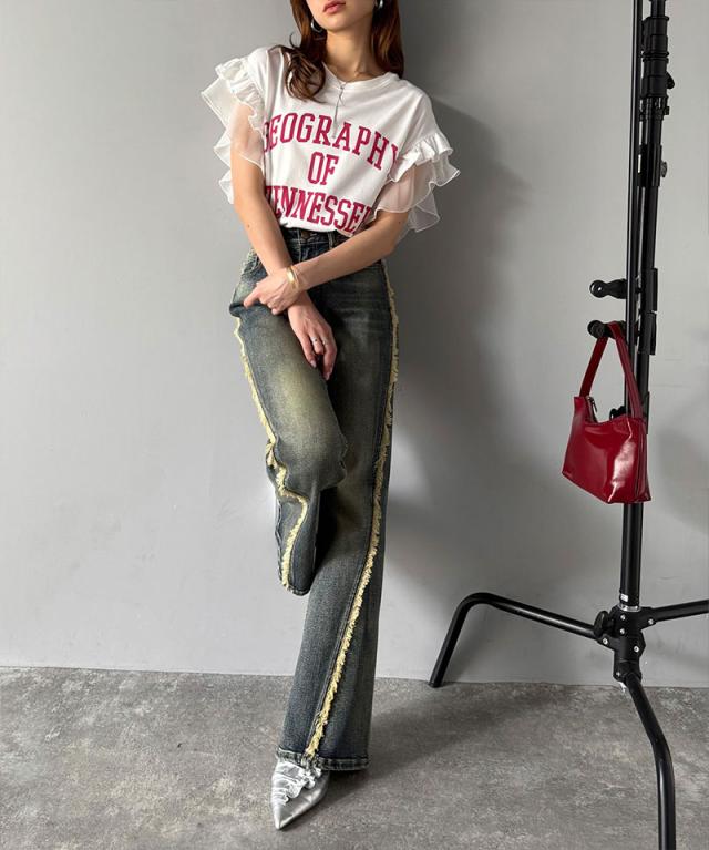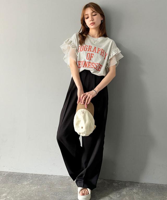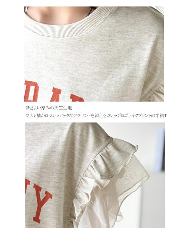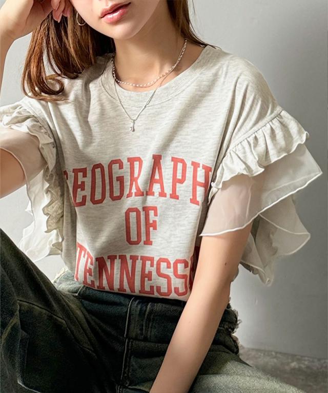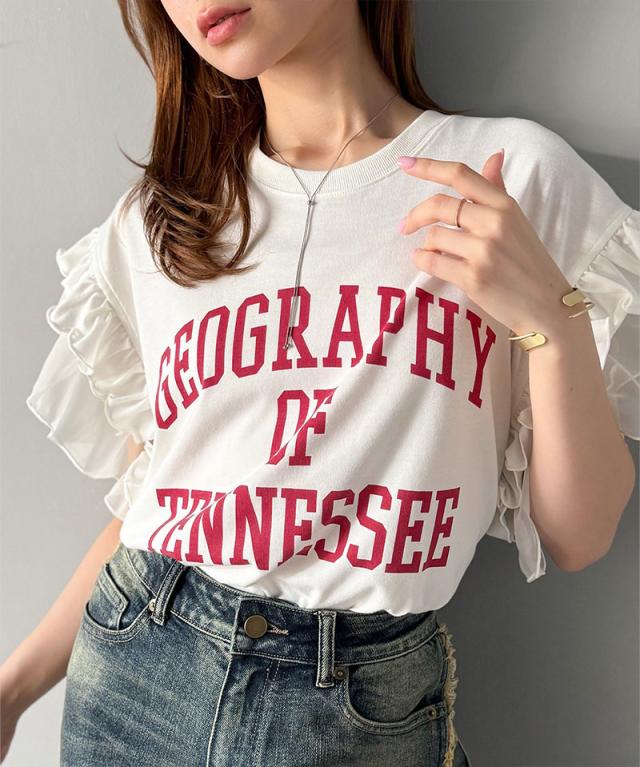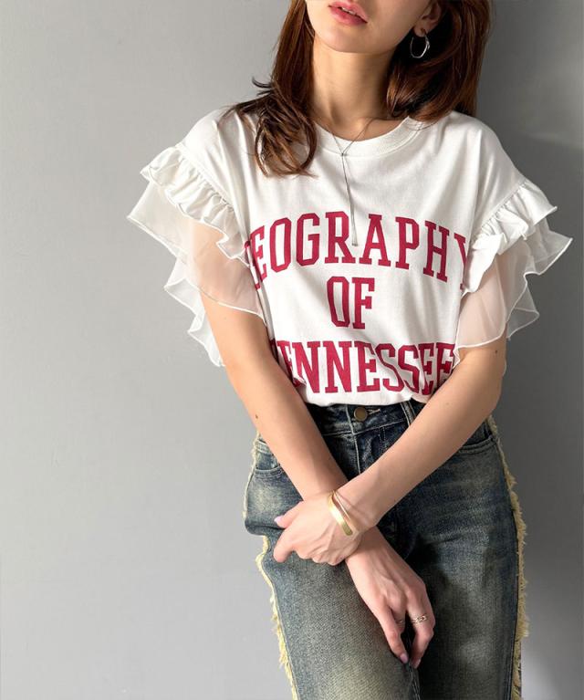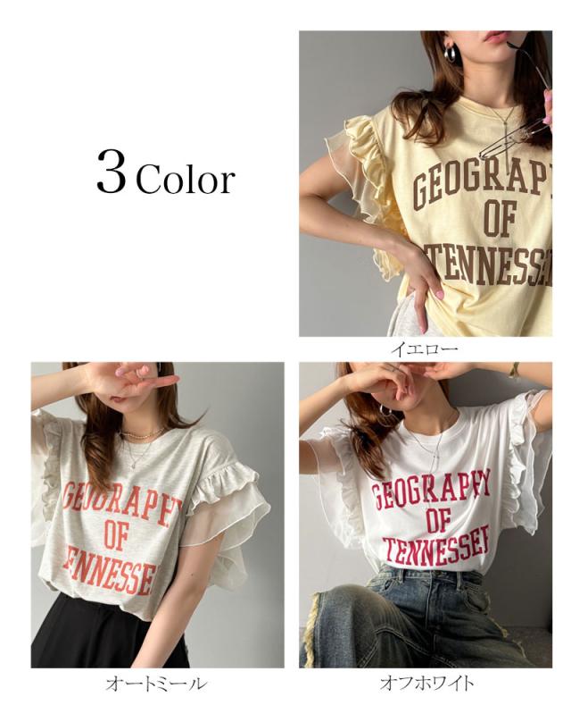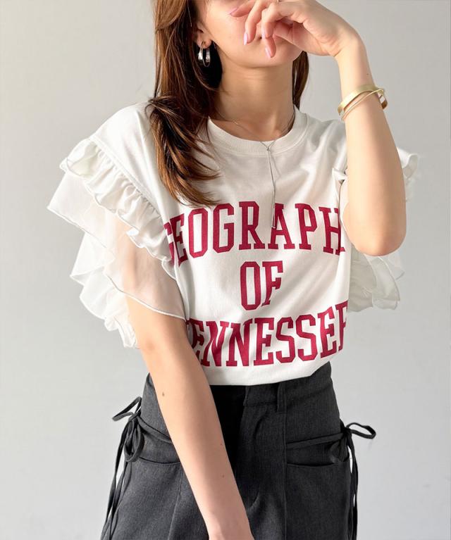 クラシカルエルフ秋新作 mily bilet トップス Tシャツ レディース ダブル フリル フレンチ スリーブ カレッジ ライク ロゴ ゆる ノースリーブT ふんわり 二の腕カバー 大きいサイズ 2025ss mi1329036