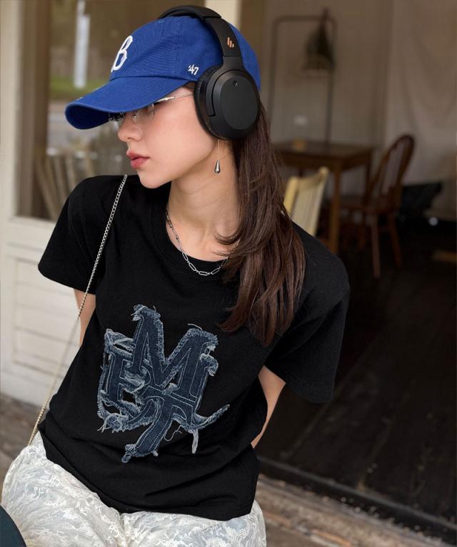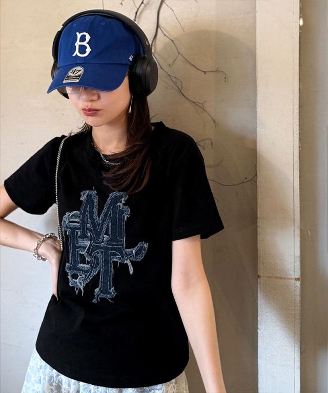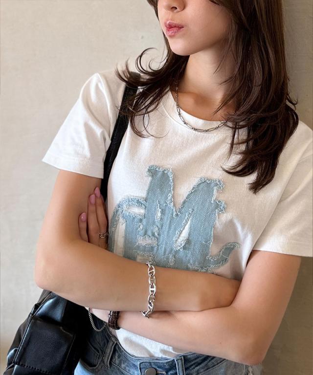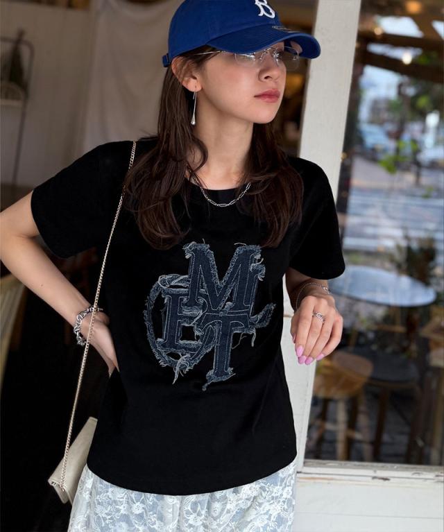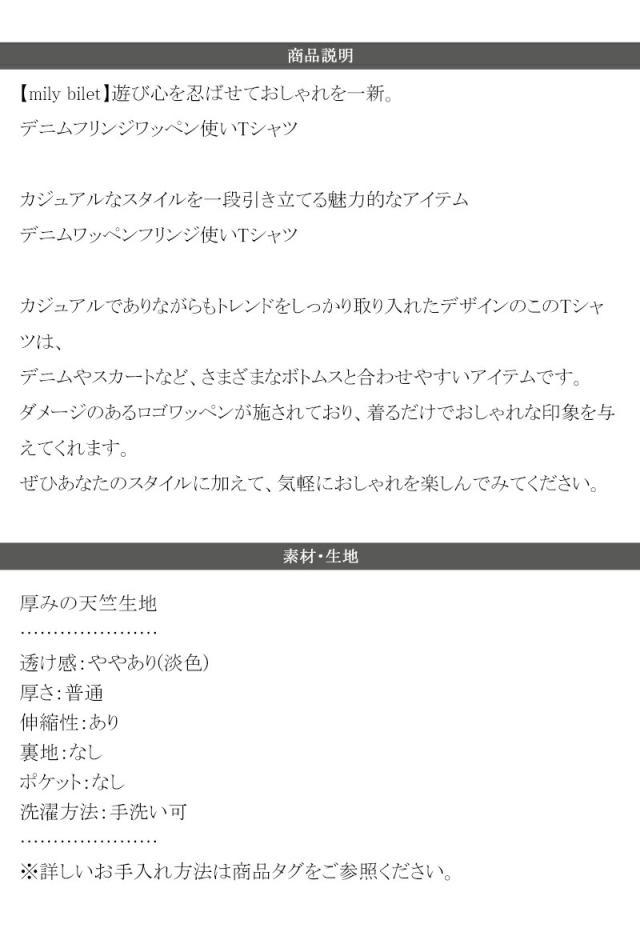 ★【mily bilet】遊び心を忍ばせておしゃれを一新。デニムフリンジワッペン使いTシャツ★