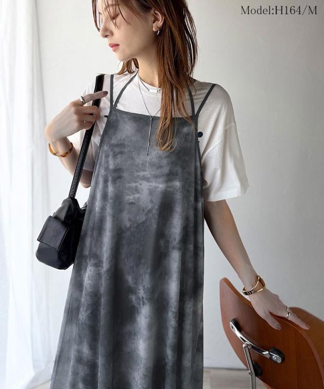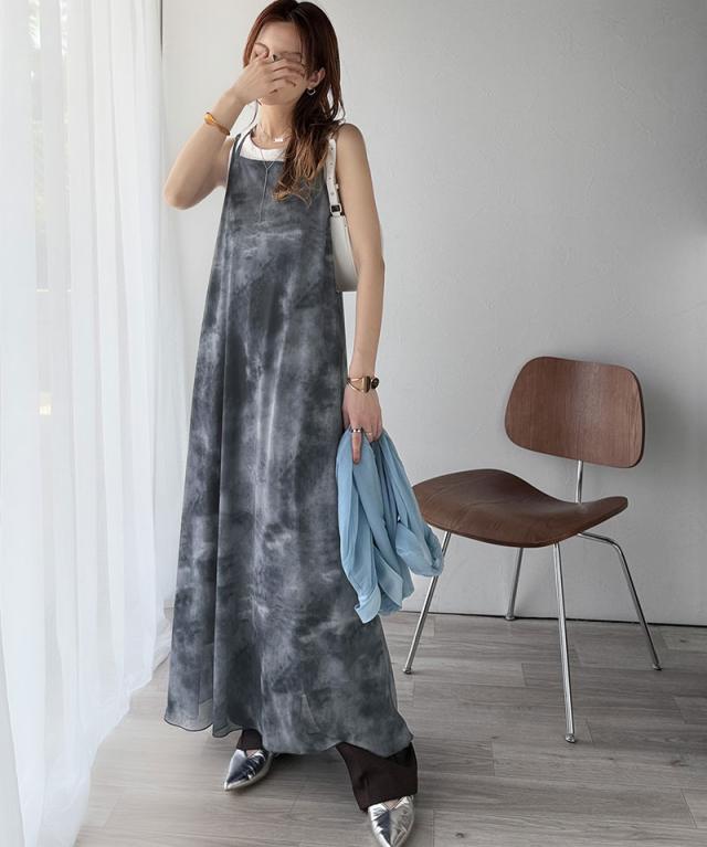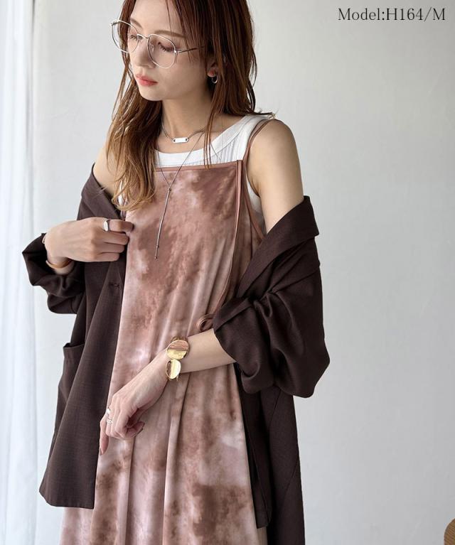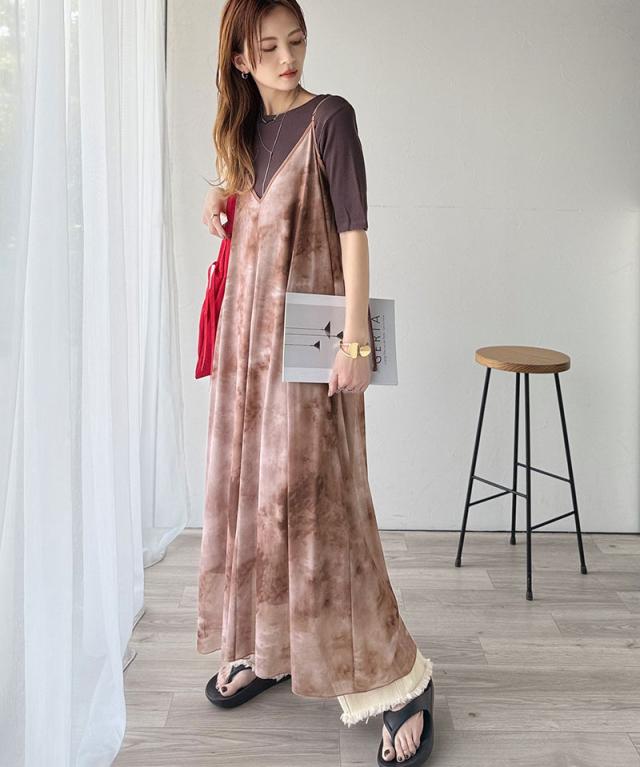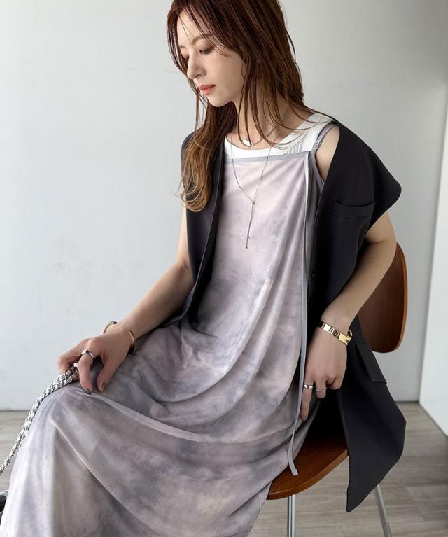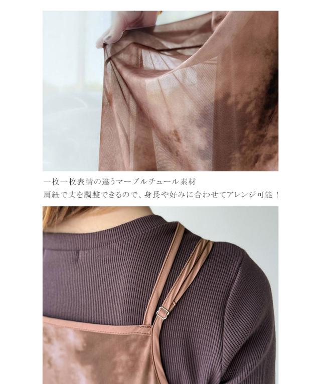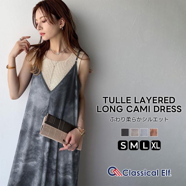 クラシカルエルフ秋新作 ワンピース レディース キャミ 前後2way チュール レイヤード ロング マーブル柄 ふわり柔らかシルエット スクエアネック Vネック 華やか キャミワンピ 丈の調節可能 上品 抜け感 チョーカー風 大きいサイズ 2025ss ce1240090