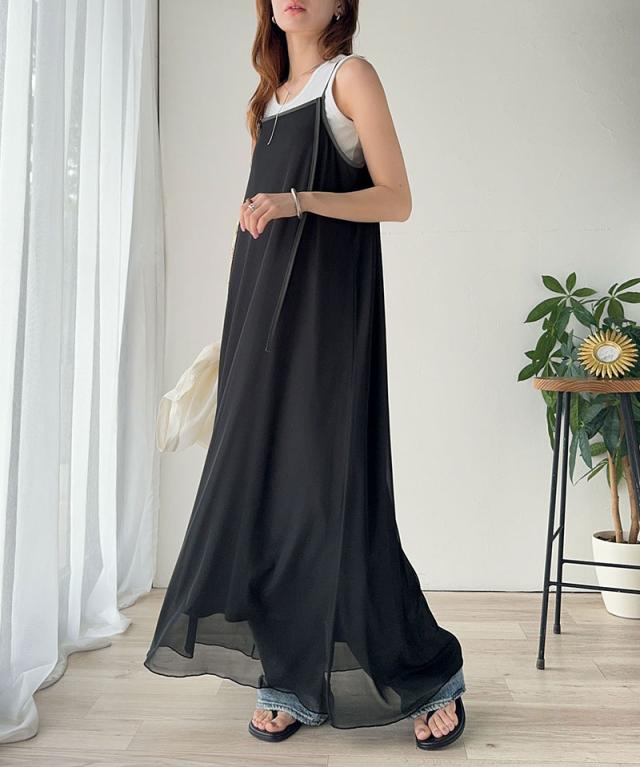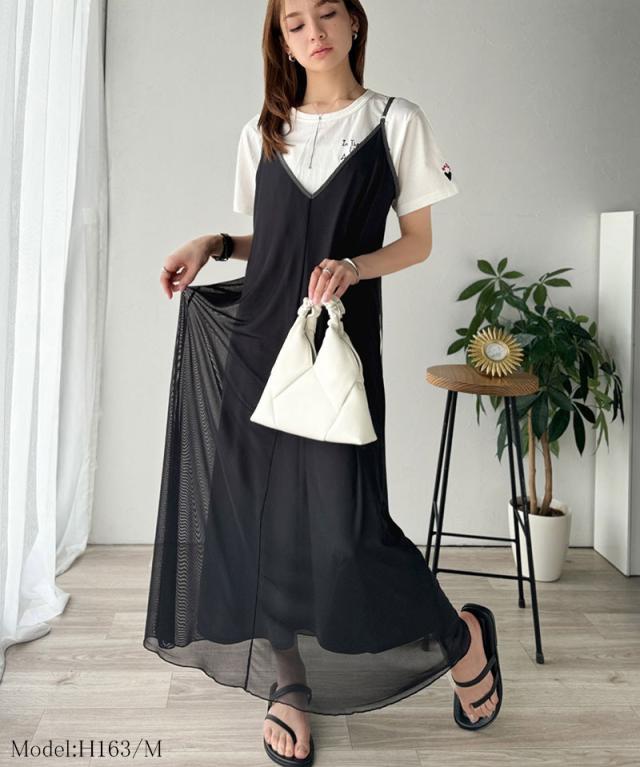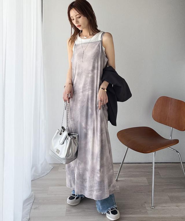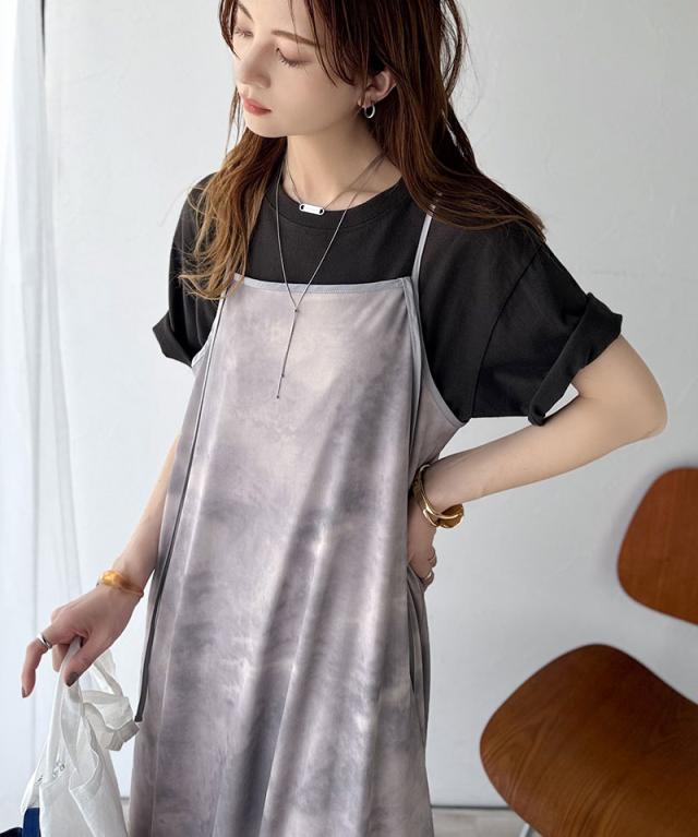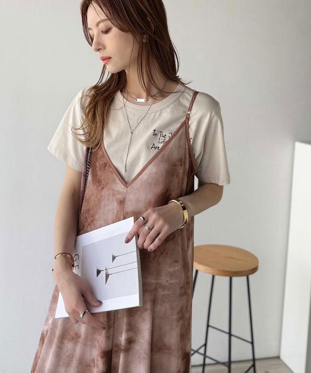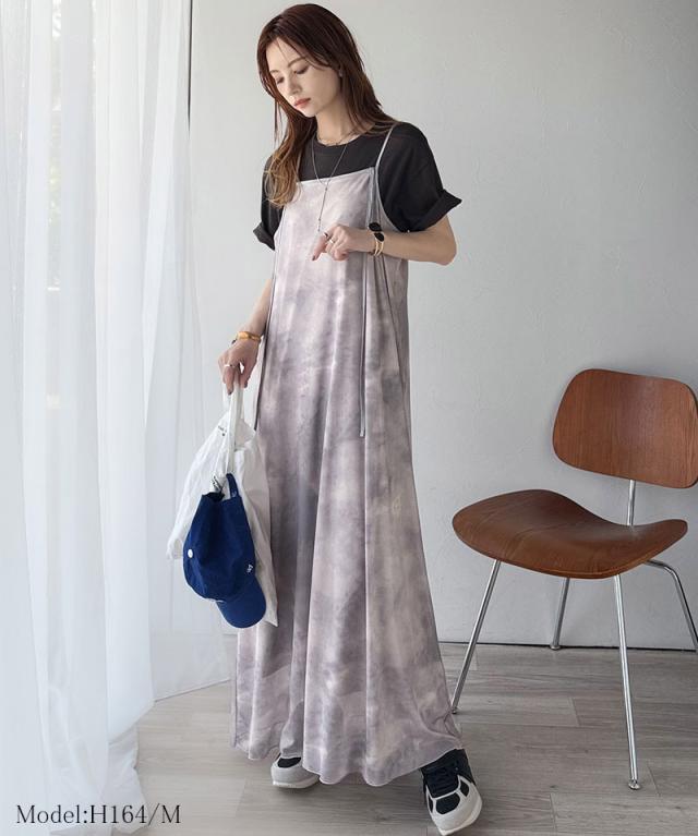 クラシカルエルフ秋新作 ワンピース レディース キャミ 前後2way チュール レイヤード ロング マーブル柄 ふわり柔らかシルエット スクエアネック Vネック 華やか キャミワンピ 丈の調節可能 上品 抜け感 チョーカー風 大きいサイズ 2025ss ce1240090
