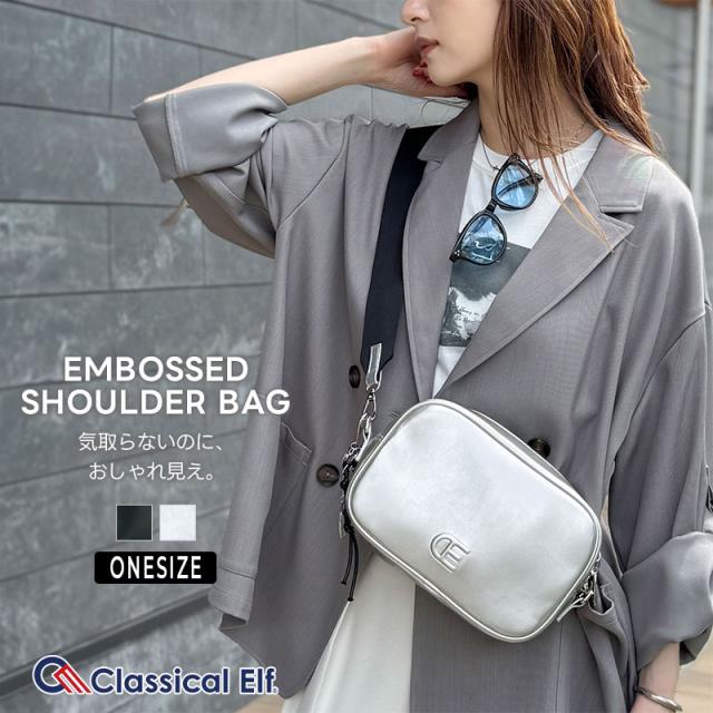 クラシカルエルフ秋新作 バッグ ショルダーバッグ レディース エンボス ワイドショルダー 収納力 軽量 シンプル オンオフ 取り外し可能 ペットボトル収納 ダブルファスナー 通勤 おでかけ 広めのマチ アクセント ポリウレタン 2025ss ce1370002