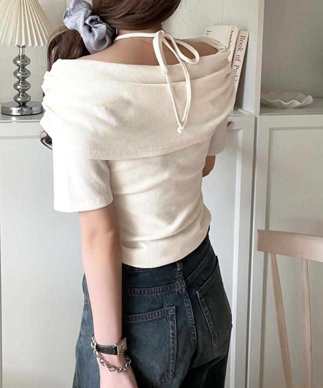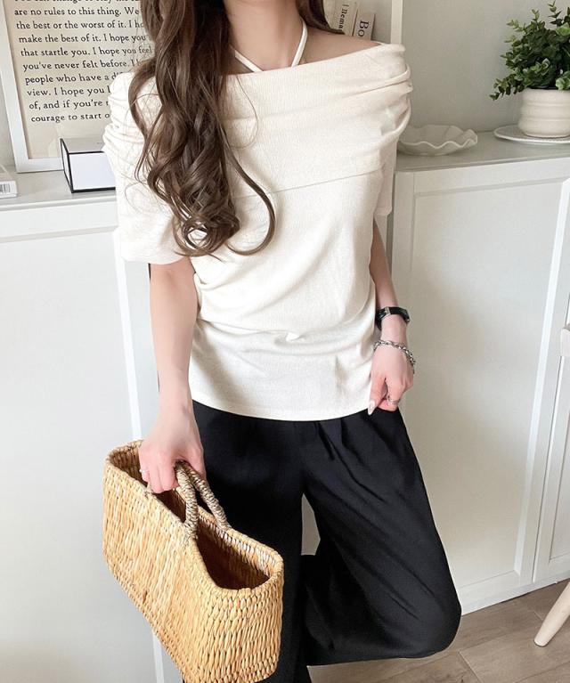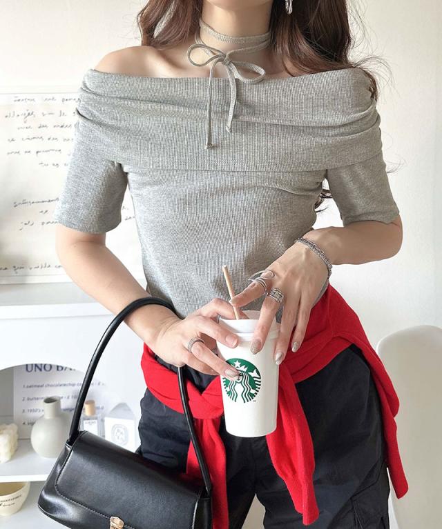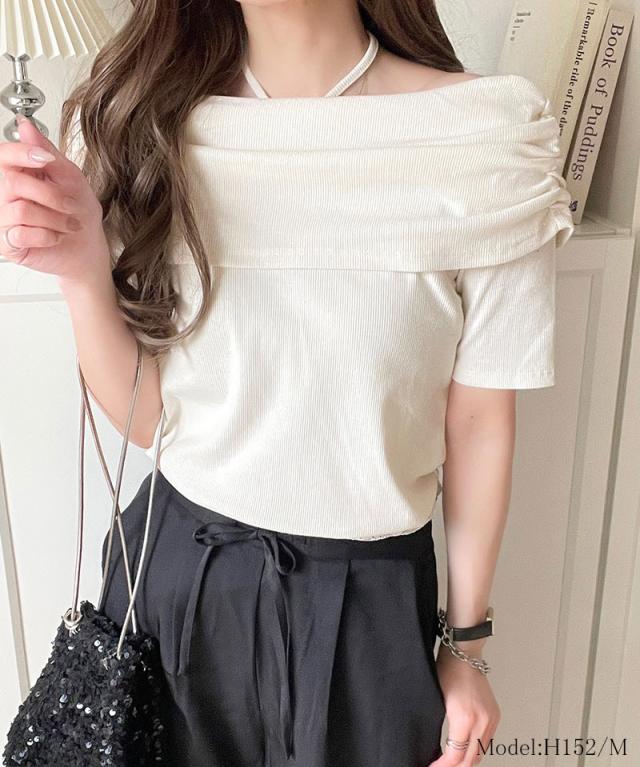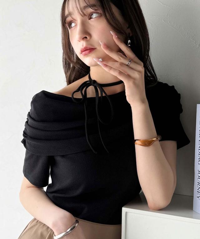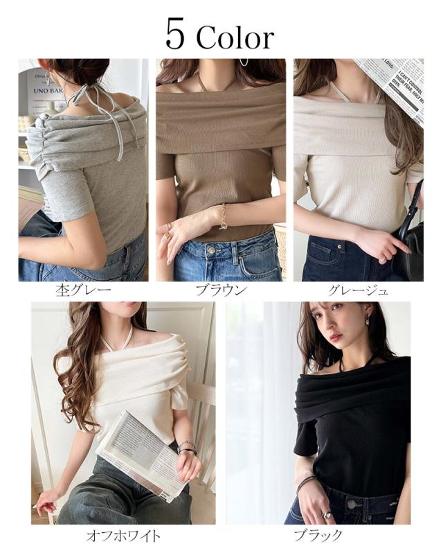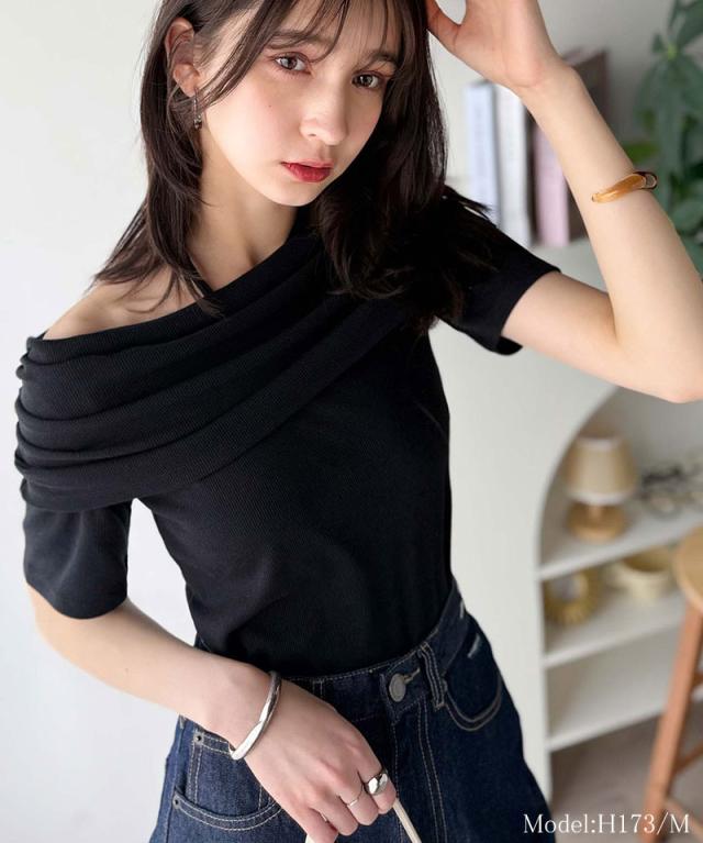クラシカルエルフ秋新作 トップス カットソー レディース タイ付 五分袖 半袖 オフショル 華奢見え 絶妙ドレープ 色気 上品 デイリー お出かけ カジュアル キレイめ エレガント ヘルシー ソフトフライス素材 伸縮性たっぷり 大きいサイズ 2025ss ce1240086