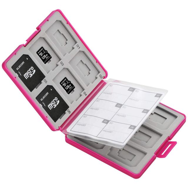 エレコム(ELECOM) メモリカードケース SD ケース プラスチック SD12枚 + microSD12枚収納 ピンク CMC-SDCPP24PN