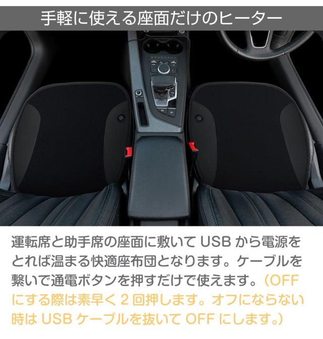 シートヒーター 後付け USB 車 自動車 USB シートヒーター ブラック 運転席 助手席 左右セット CC-SHBFS | シートカバー カーシート カバー 座面 車用 シート ヒーター シンプル 黒 オールブラック 電熱シート ホットカーシート 暖かい 暖房器具 デスク チェア