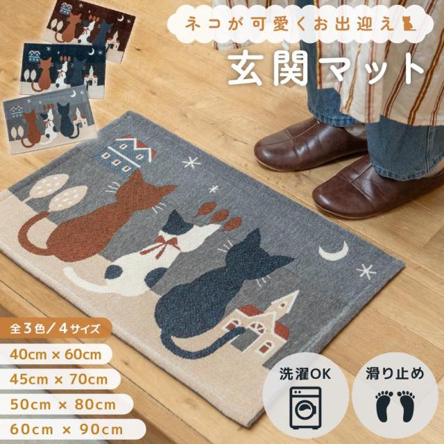 猫柄 玄関マット(グレー・ネイビー・ブラウン)全5サイズ