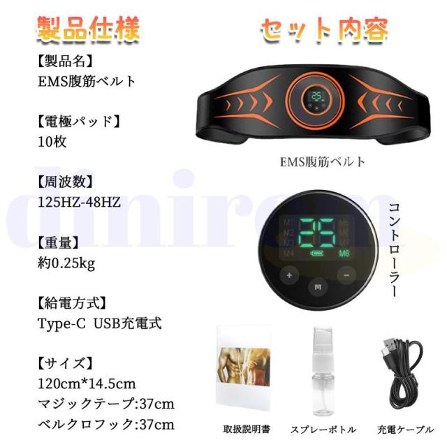ジェルシート不要 EMS腹筋ベルト 8種類モード 12枚伝導布 25段階強度 腹筋マシン 筋トレ トレーニングマシーン 男女兼用 USB充電式 筋肉刺激 液晶表示