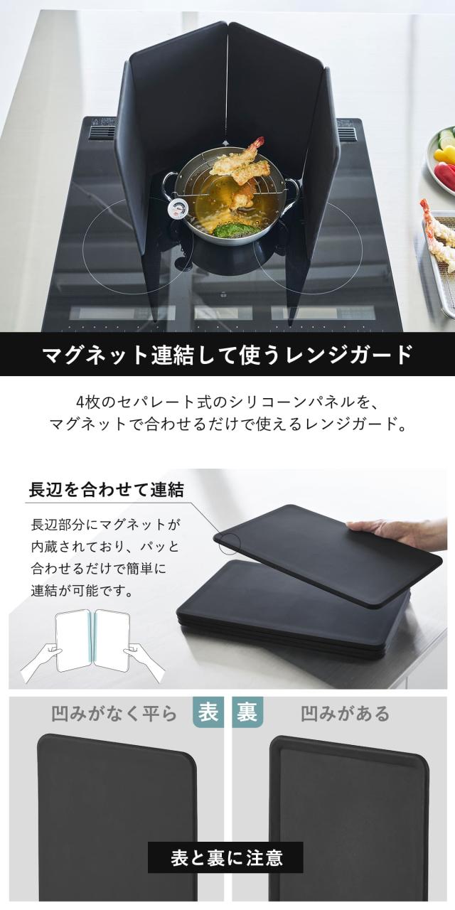 山崎実業 tower マグネットレンジガード タワー 4枚パネル ( 4903208014564 タワーシリーズ マグネット レンジガード 4枚 パネル シリコーンパネル 油はね ガード コンパクト シリコンパネル 磁石 4面 )