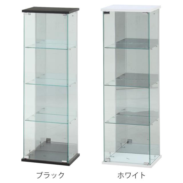 ガラスコレクションケース 幅39cm 4段 ショーケース ( コレクションケース ラック 棚 ディスプレイ ガラス製 ウィスキー棚 ウイスキー棚 BAAL 背面ミラー 収納 展示 フィギュアケース 見せる収納 キャスター付 ブラック ホワイト )