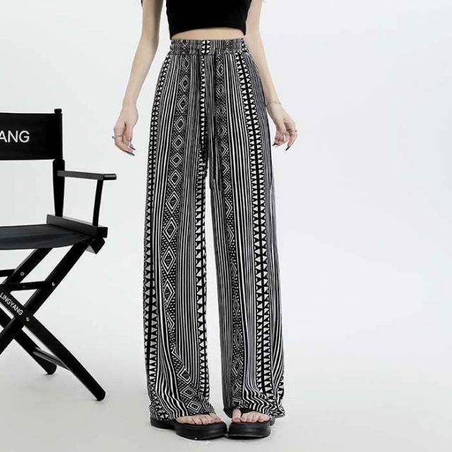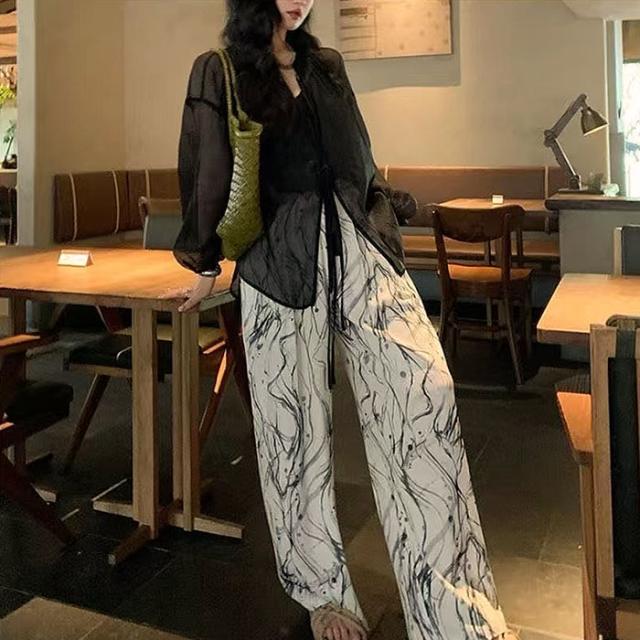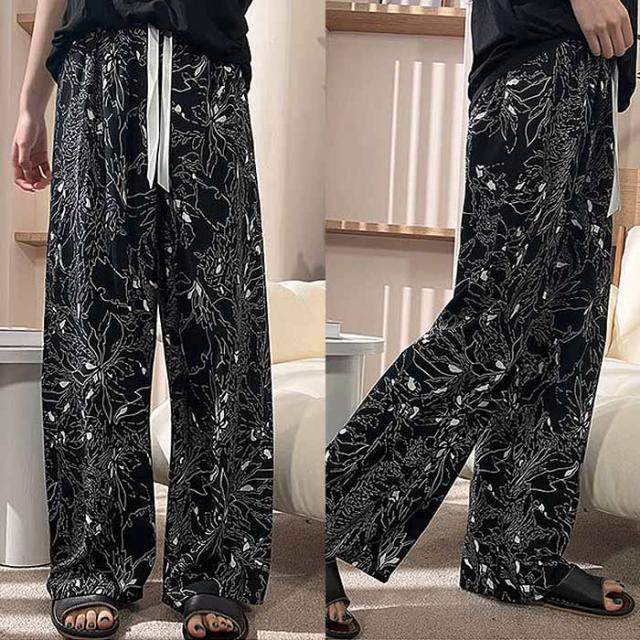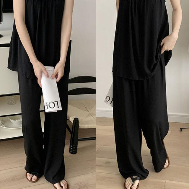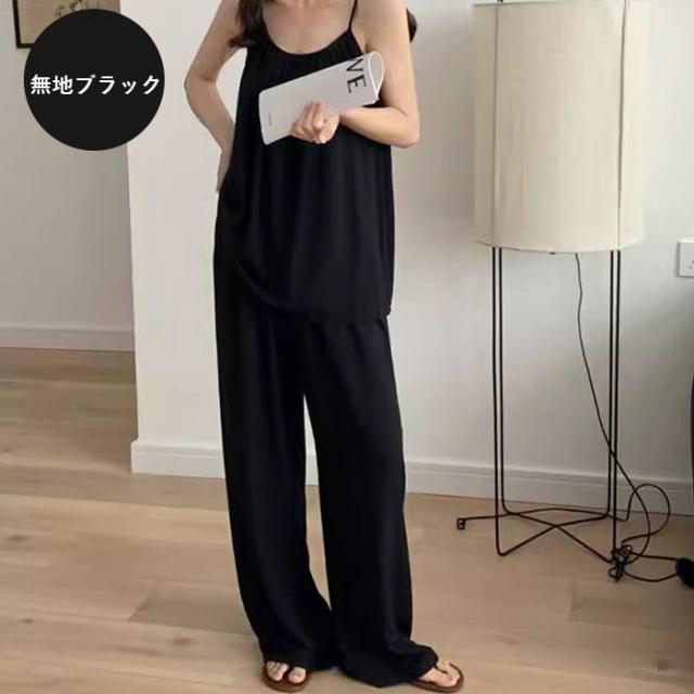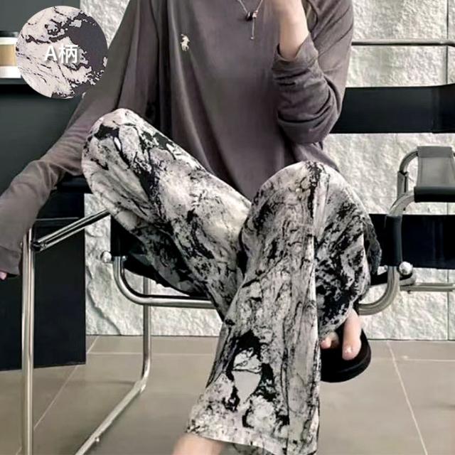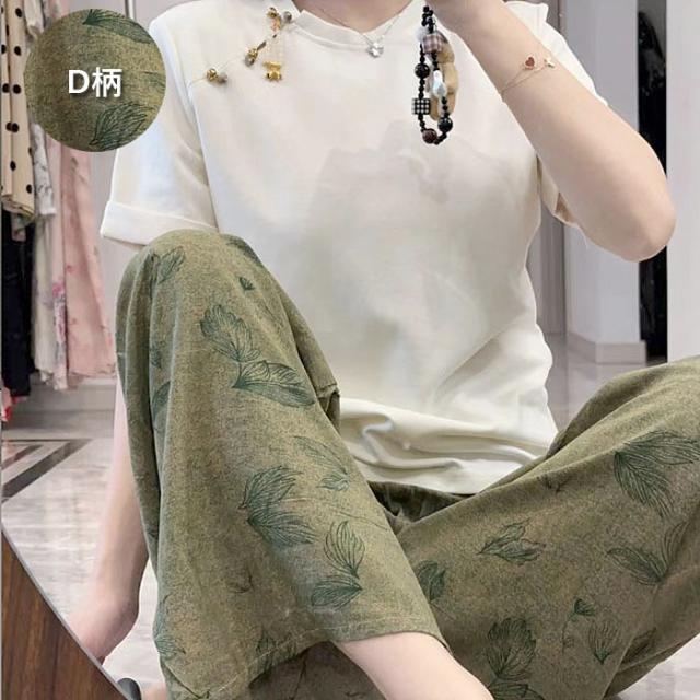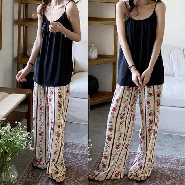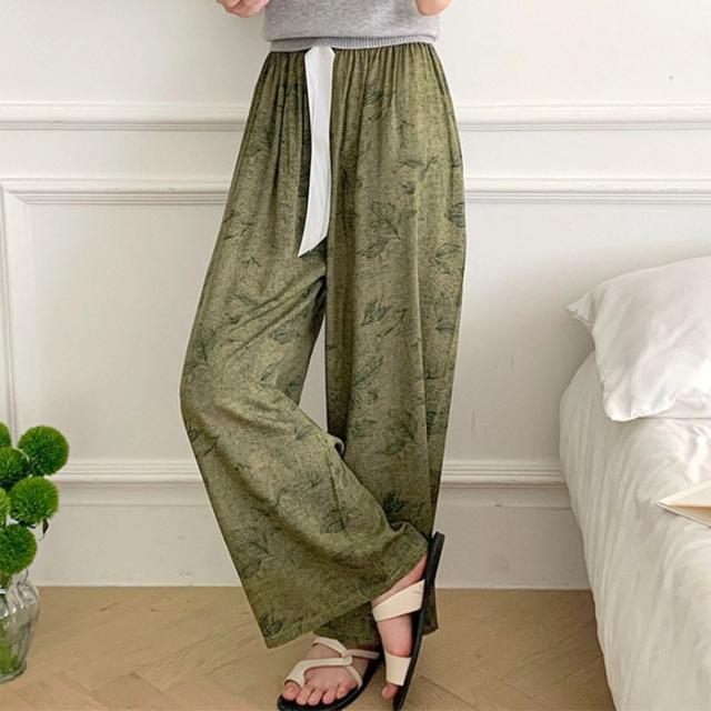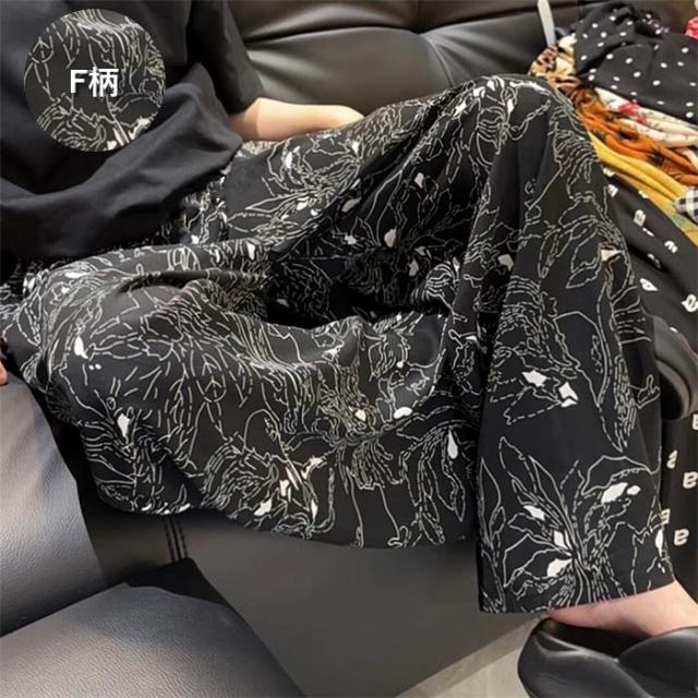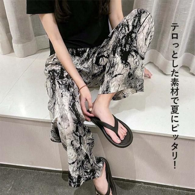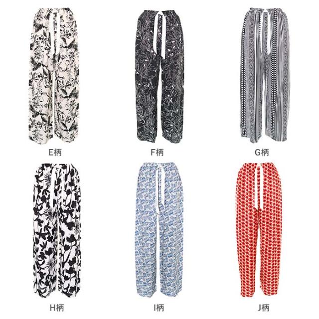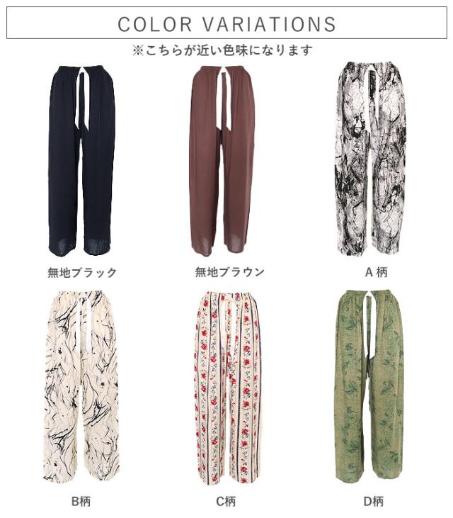 春新作 ボトムス レディース ワイドパンツ 春 夏 黒 おしゃれ 総柄 花柄 無地 ウエストゴム リボン付 涼しい ゆったり[郵1]^b499^ ●
