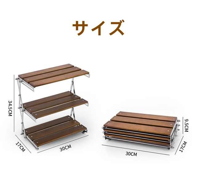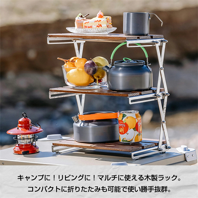 卓上収納ラック 3段 折り畳み式 アウトドアラック キャンプラック 家庭用収納ラック 卓上収納 置き棚 小物置き 多機能 軽量 デスクラック コンパクト 組み立て簡単