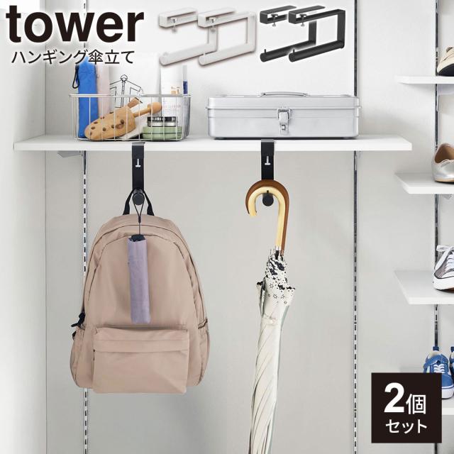 山崎実業 tower タワー 下駄箱中ハンギング傘立て 2個セット ホワイト 10080 / ブラック 10081 | 傘立て 傘掛け ハンガー掛け 玄関収納 シューズクローク クローゼット 棚板 下駄箱 レインコート 合羽 吊り下げ シンプル