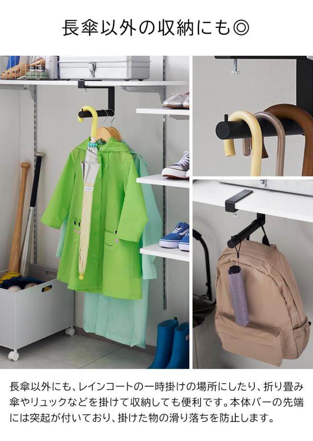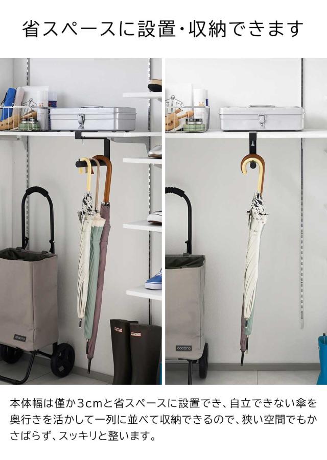山実 yamazaki ハンギング 吊るすタイプ 戸棚収納 玄関収納 シューズクローク収納 下駄箱収納 傘ラック 傘ハンガー 棚板取付 折りたたみ傘 折り畳み傘 デッドスペース 有効活用 空間活用 雨具収納 長傘 新生活 一人暮らし 賃貸物件 シンプル スリム スマート コンパクト 省スペース おすすめ 便利 使いやすい アイデア商品 スタイリッシュ モダン モノトーン インテリア デザイン 見せない収納 隠す収納 ホワイト ブラック4903208100809