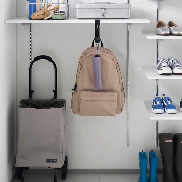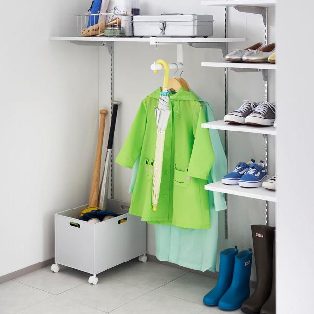 折り畳み傘やリュックの収納にも折り畳み傘やリュックを引っ掛けて収納もOK。