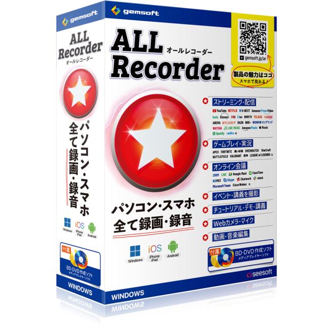 ◆Windows・iOS・Androidの映像/音声/操作を、録画/録音する多機能ソフト。 BD/DVD作成ソフト、動画/音楽/DVD対応メディアプレイヤー 付属