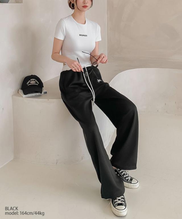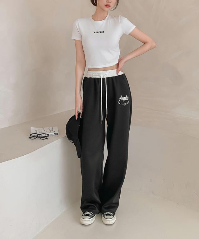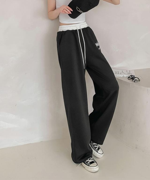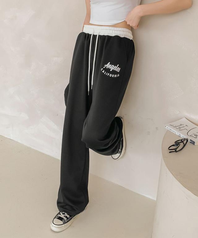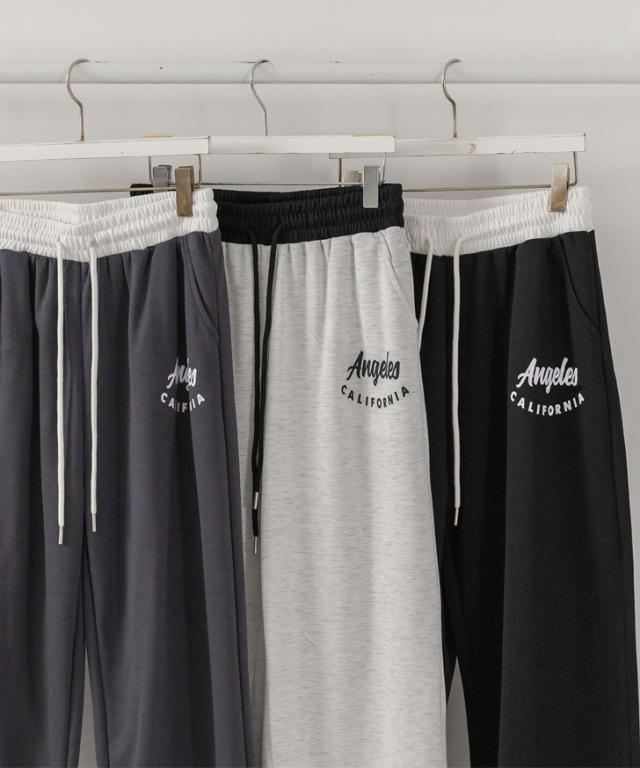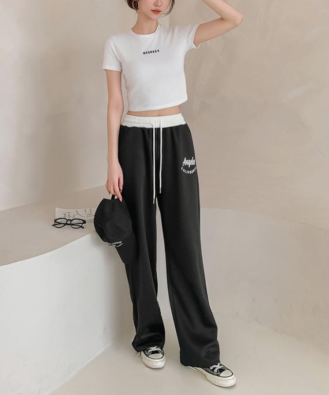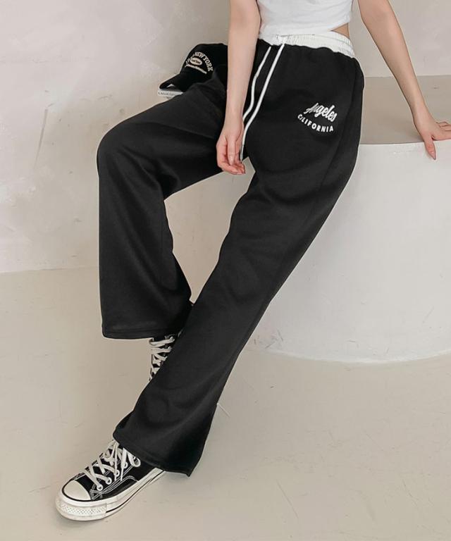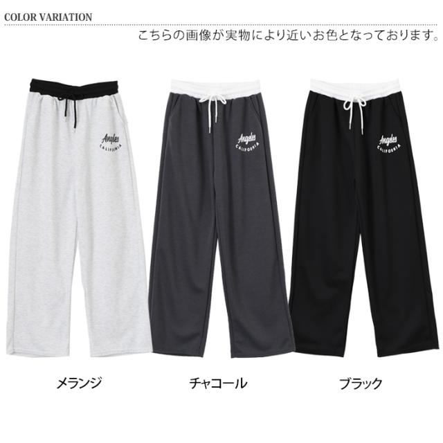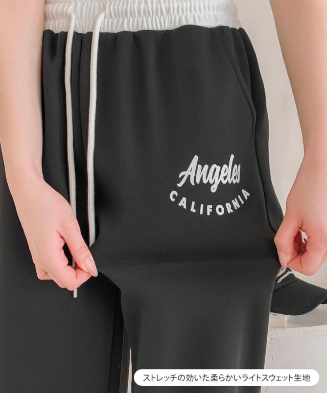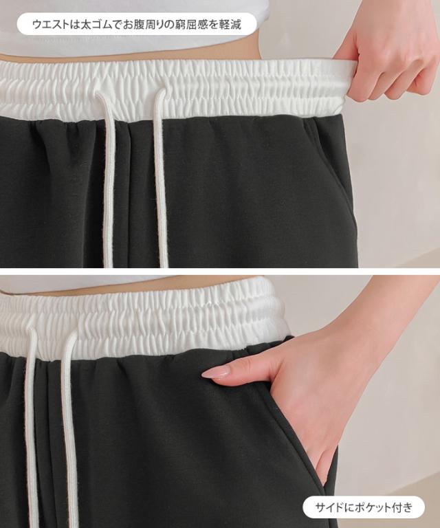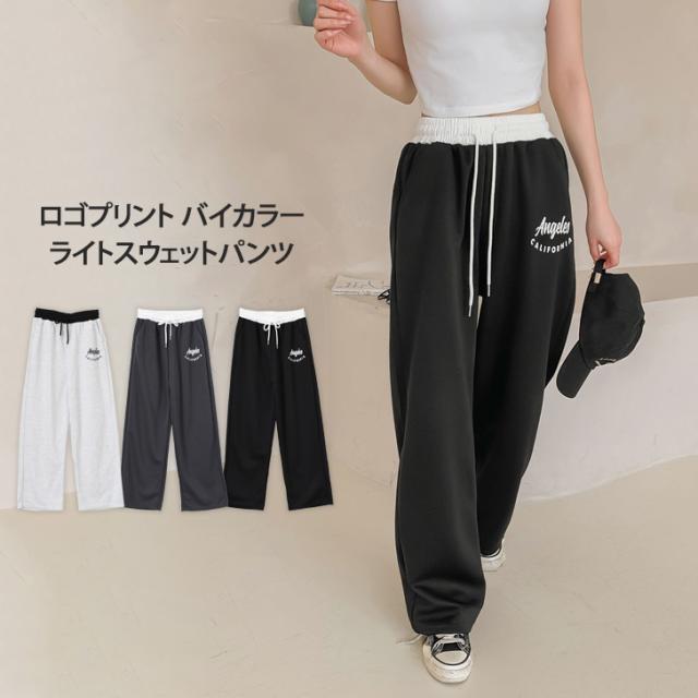 新作 サイドポケットロゴプリントバイカラーライトスウェットパンツ レディース ボトムス 春 夏 秋 薄手 ゆったり ウエストゴム 伸縮性 スエット 洗える ウォッシャブル カジュアル 部屋着 ルームウェア 運動